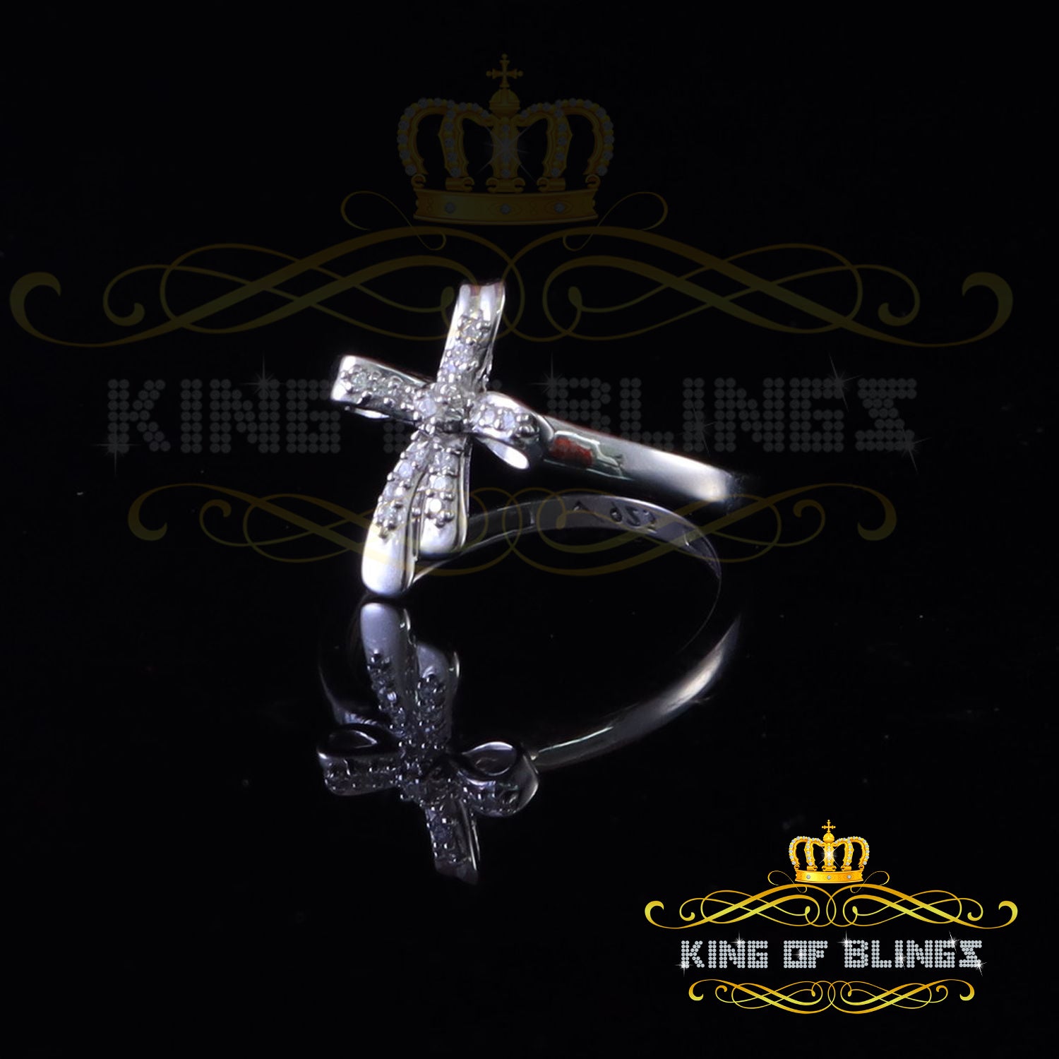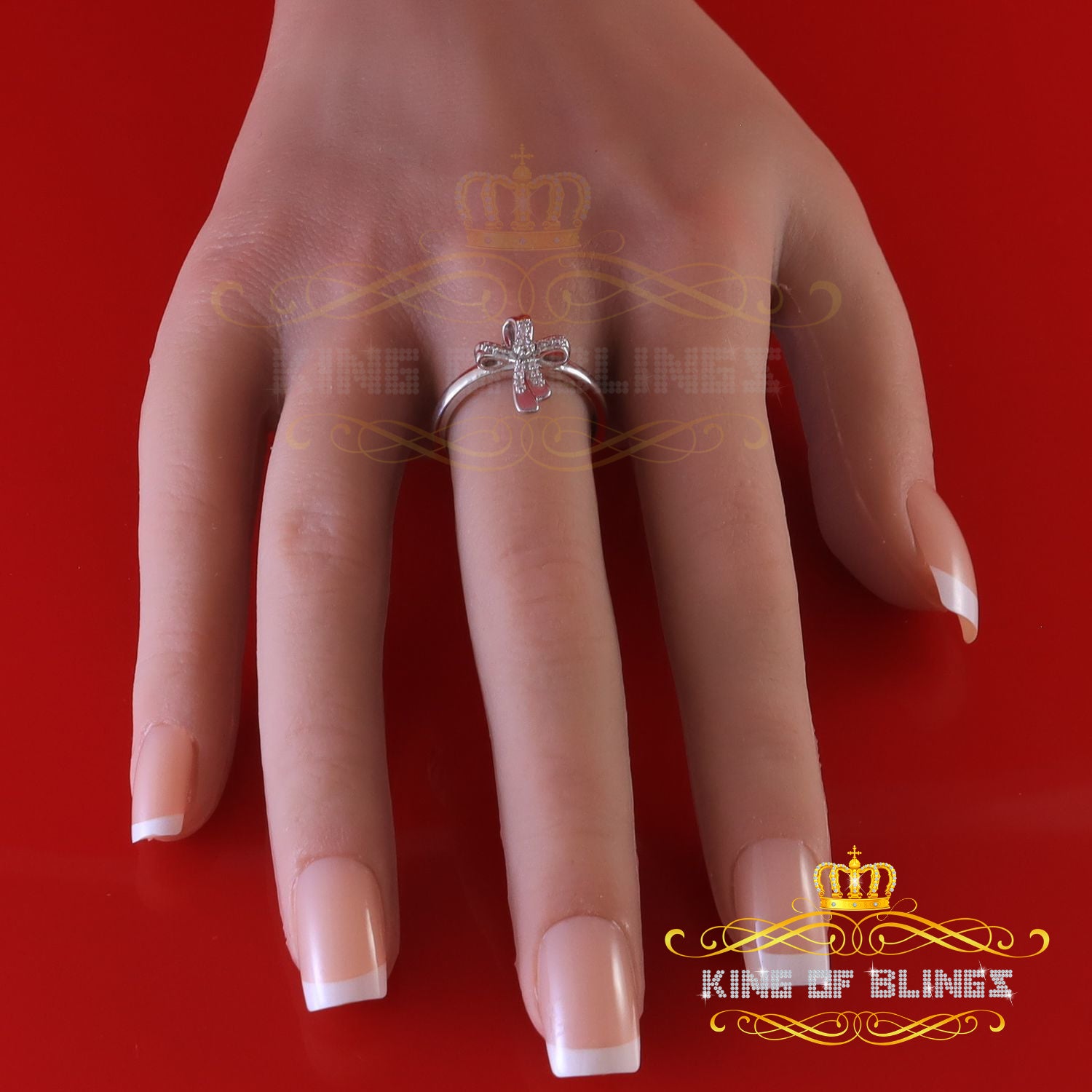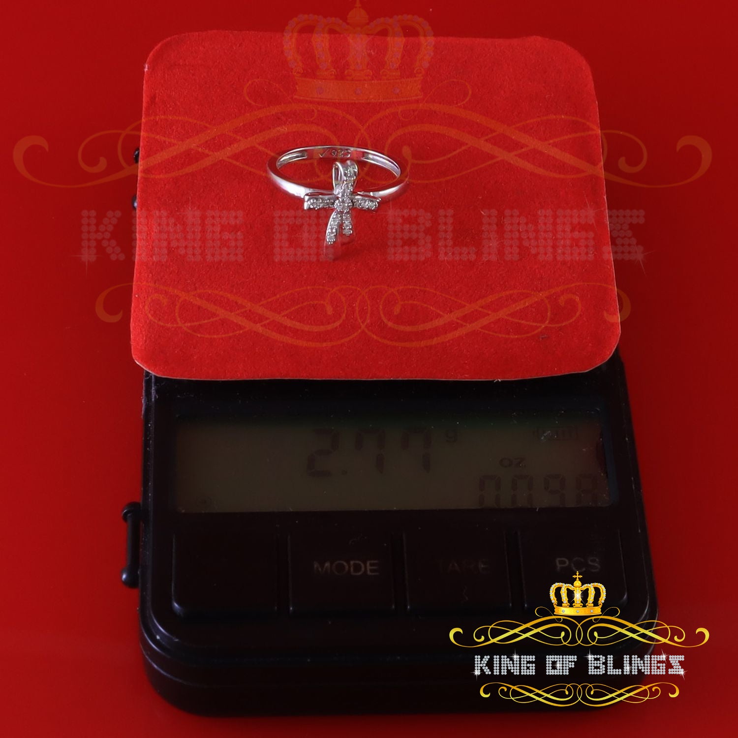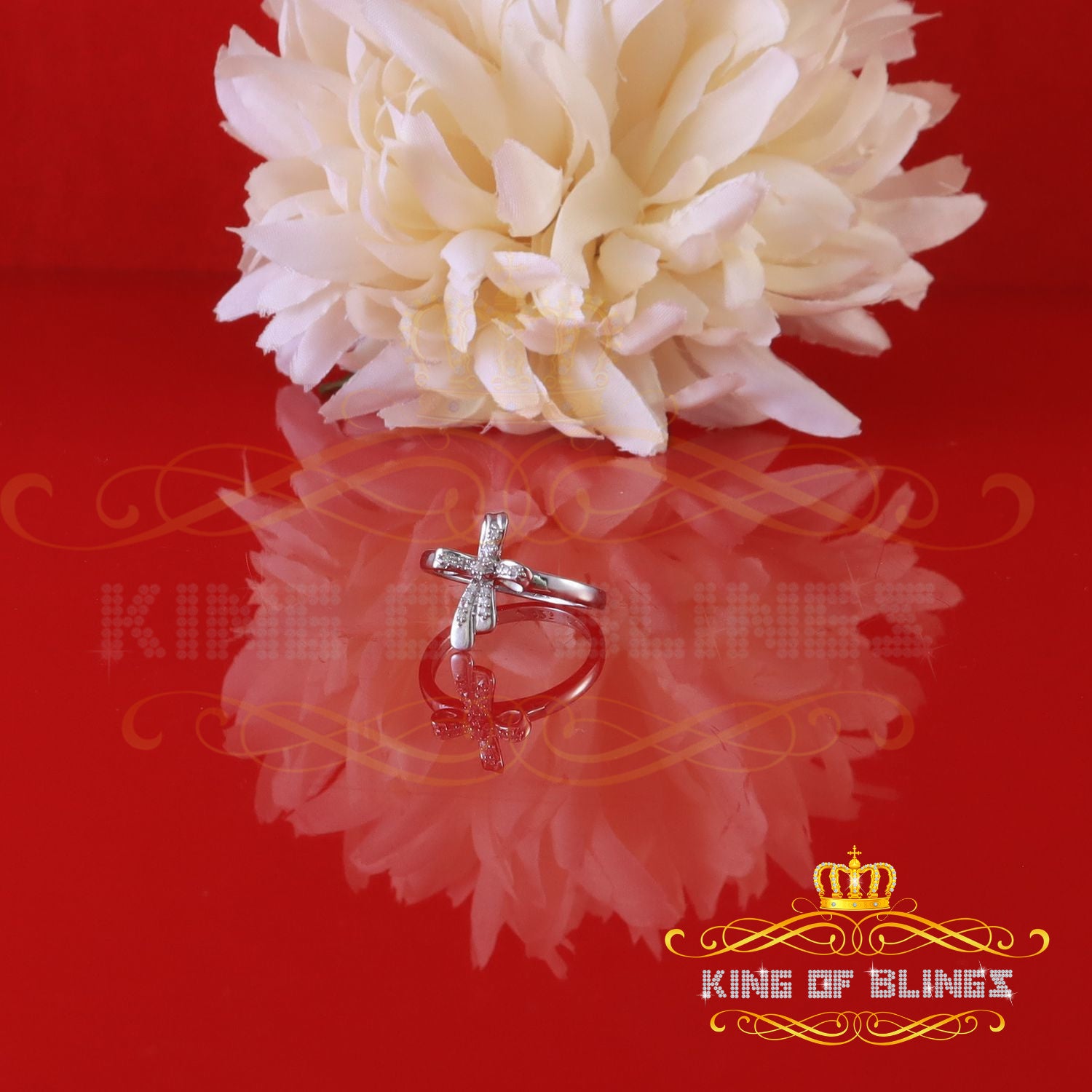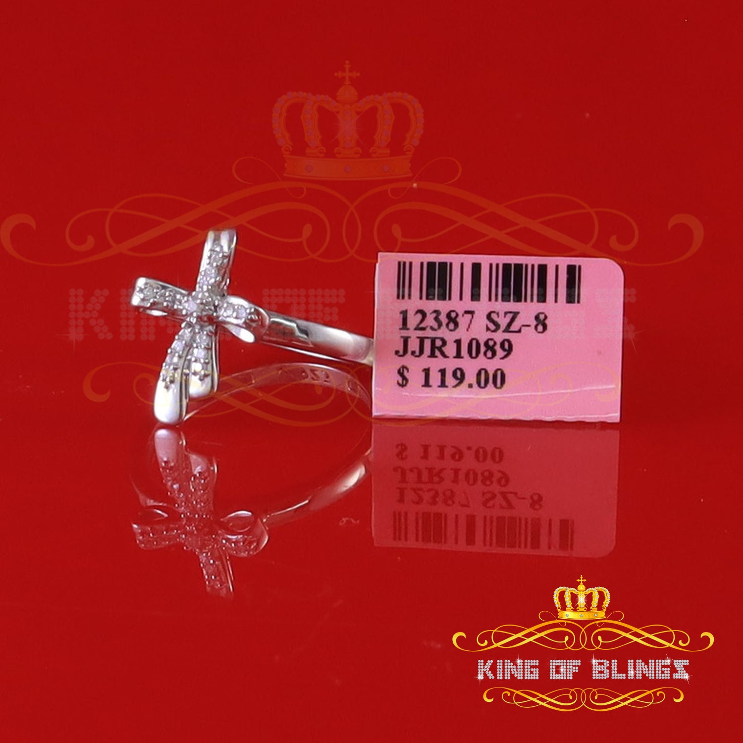 King Of Bling's925 Sterling White Silver Shiny Cross 0.17ct Cubic Zirconia Womens Ring Size 8