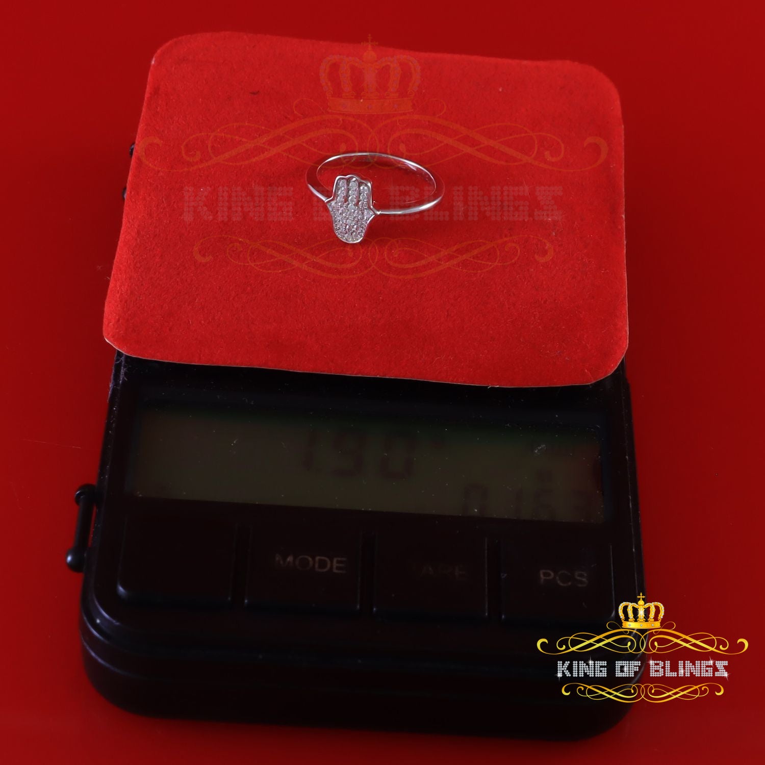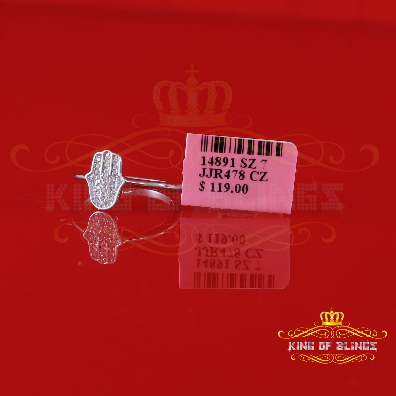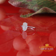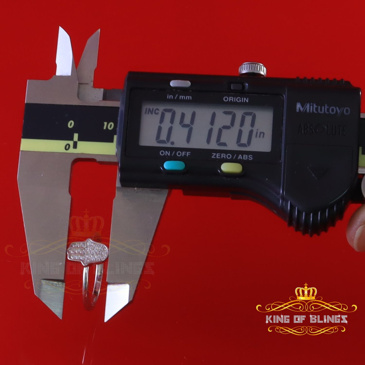 King Of Bling's925 Sterling White Silver Shiny Hamsa 0.40ct CZ Women's Ring Size 6