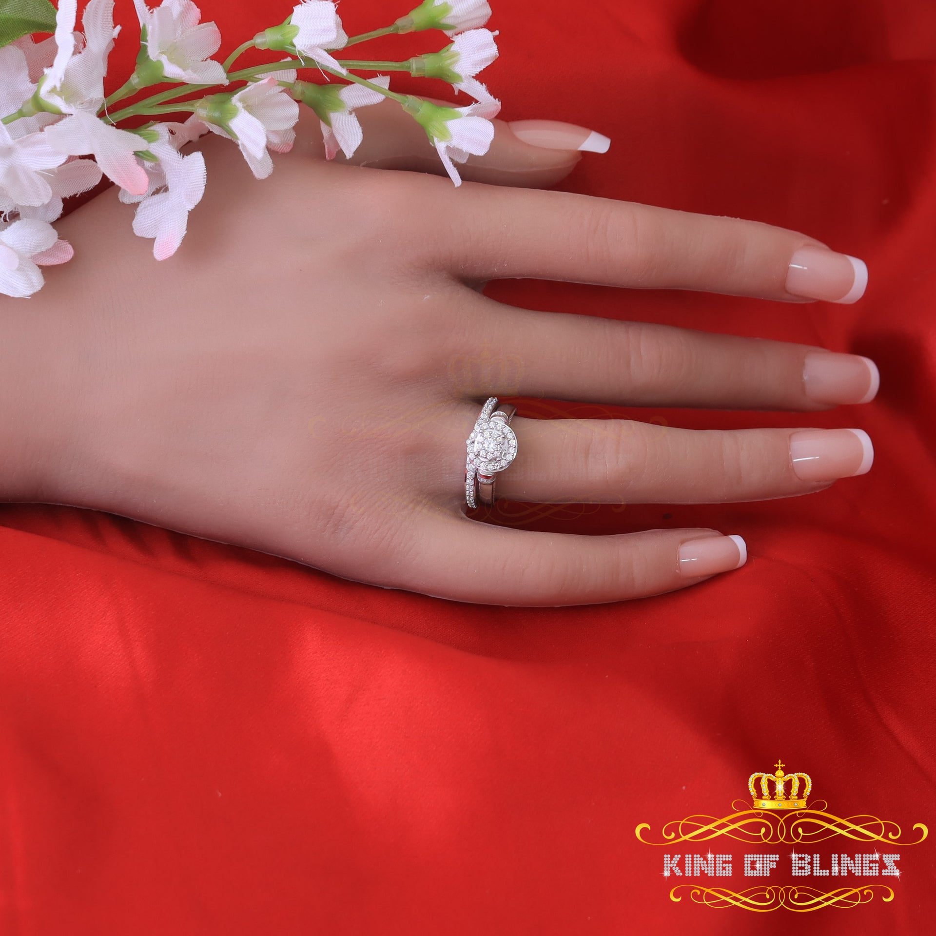 King Of Bling's925 Women's White Cubic Zirconia Silver 1.25ct Round Bridal Set Ring Size 7