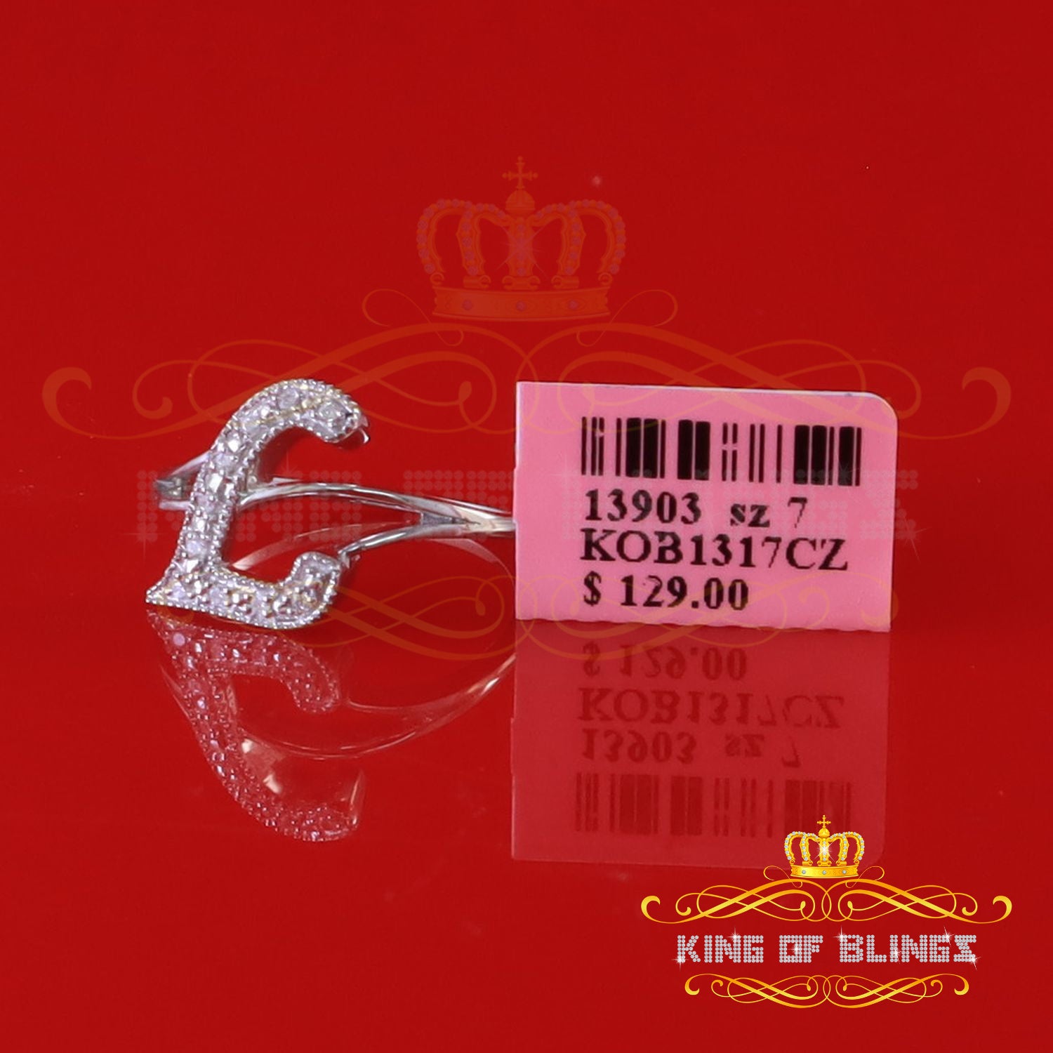 King Of Bling'sCubic Zirconia 0.10ct Alphabet L Women's And White Silver Ring Size 7