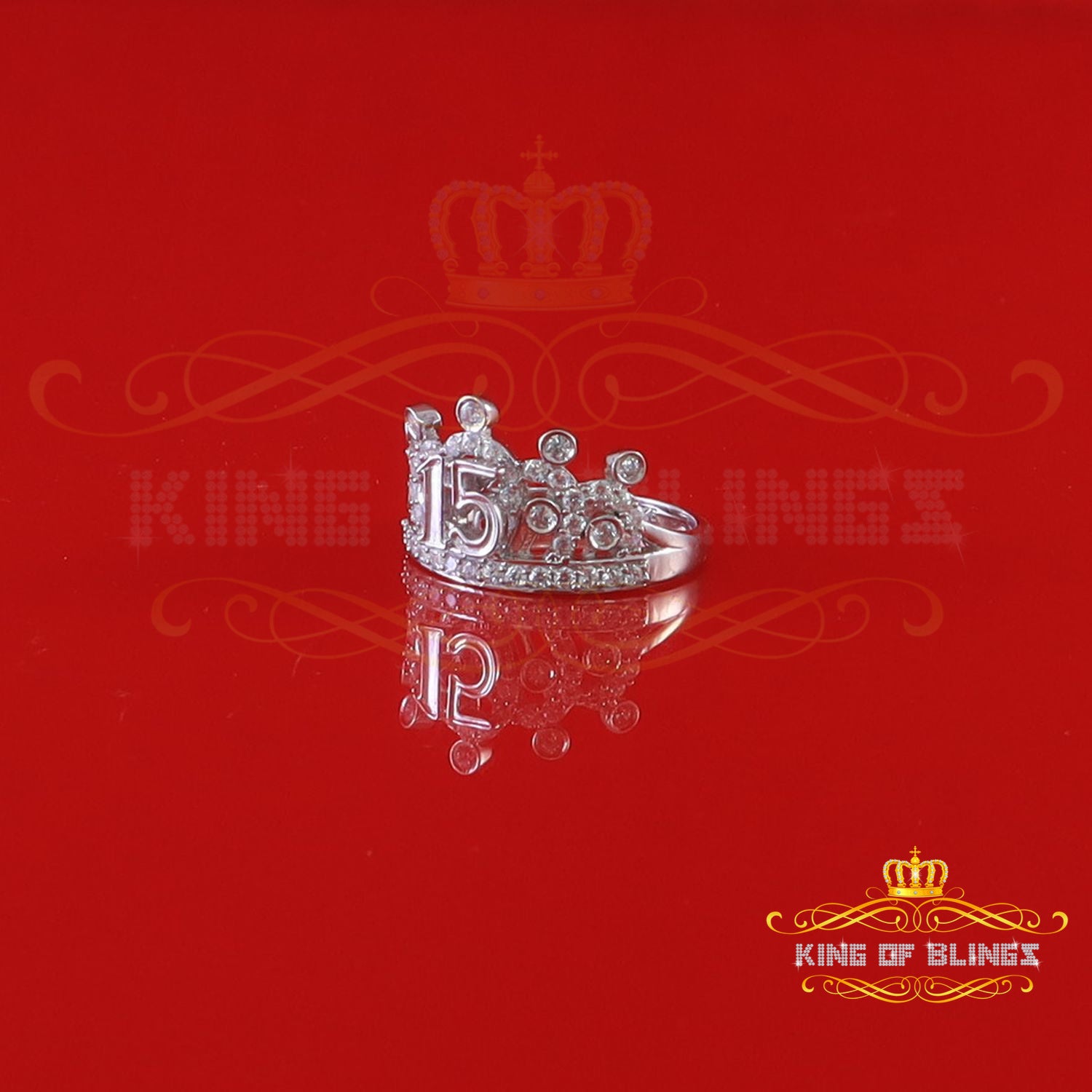 King Of Bling'sSterling 925 White Silver 1.50ct Quincenera Cubic Zirconia Women's Ring Size 8