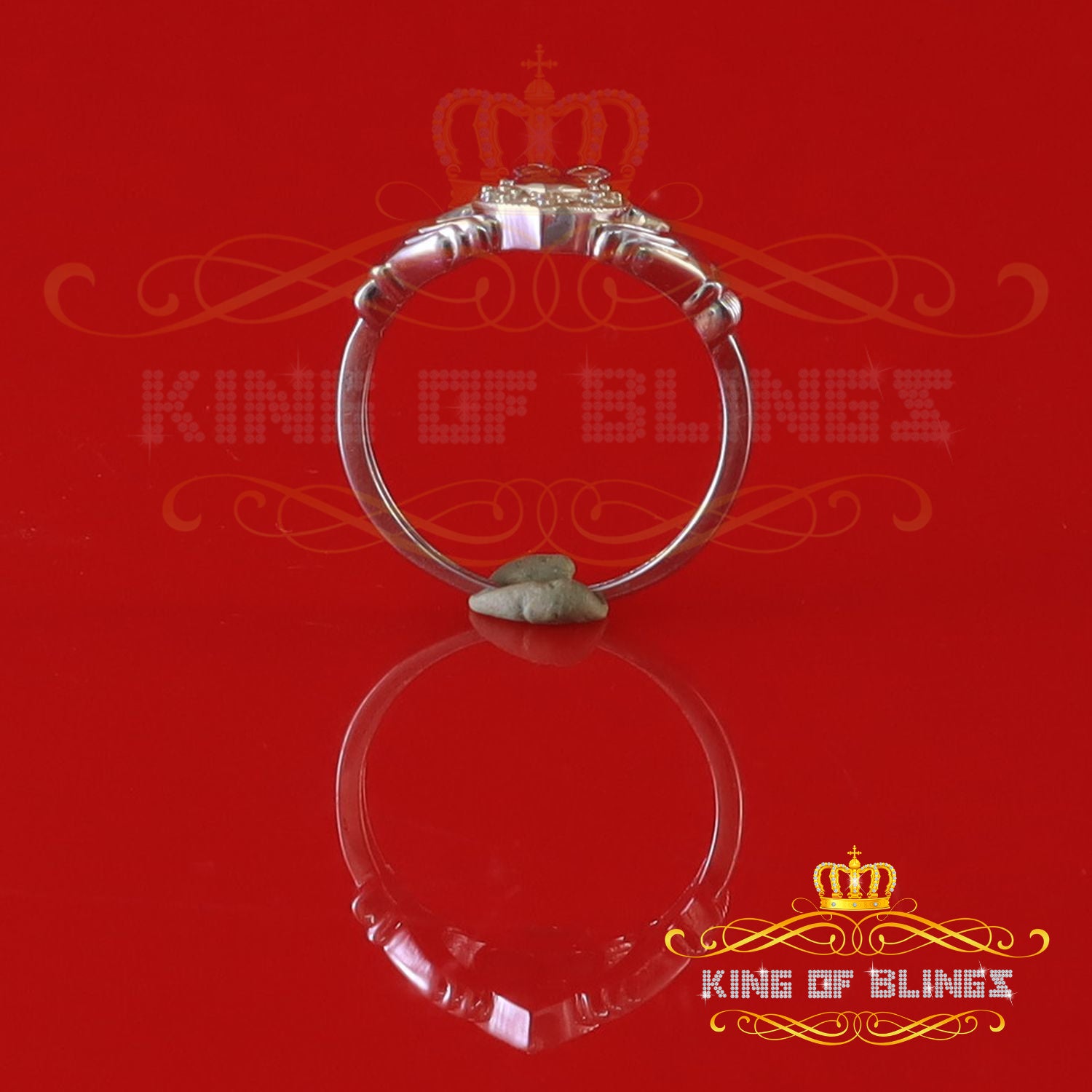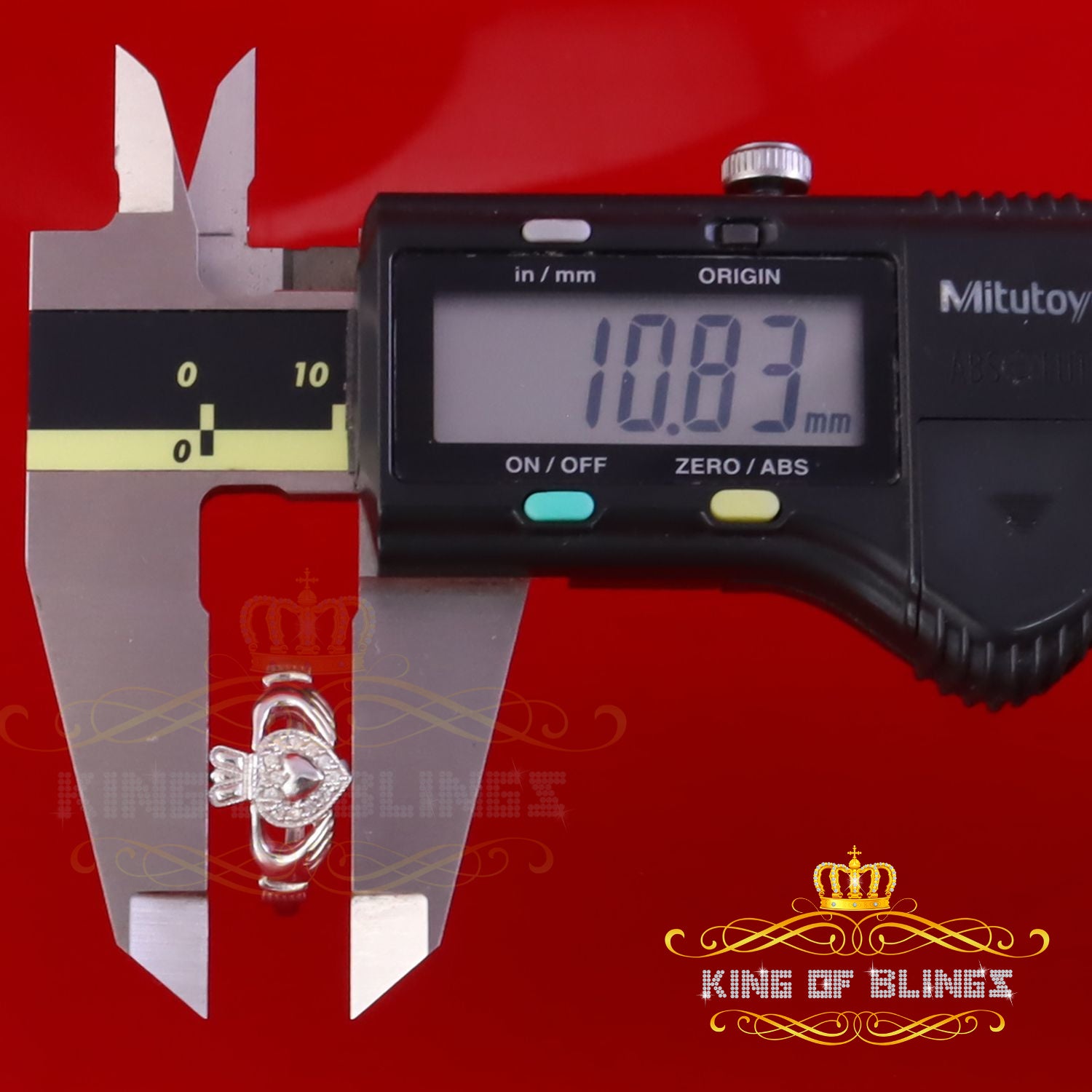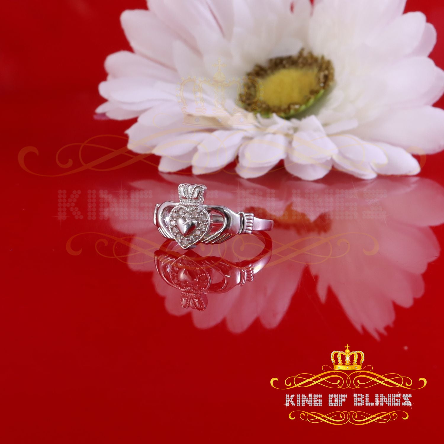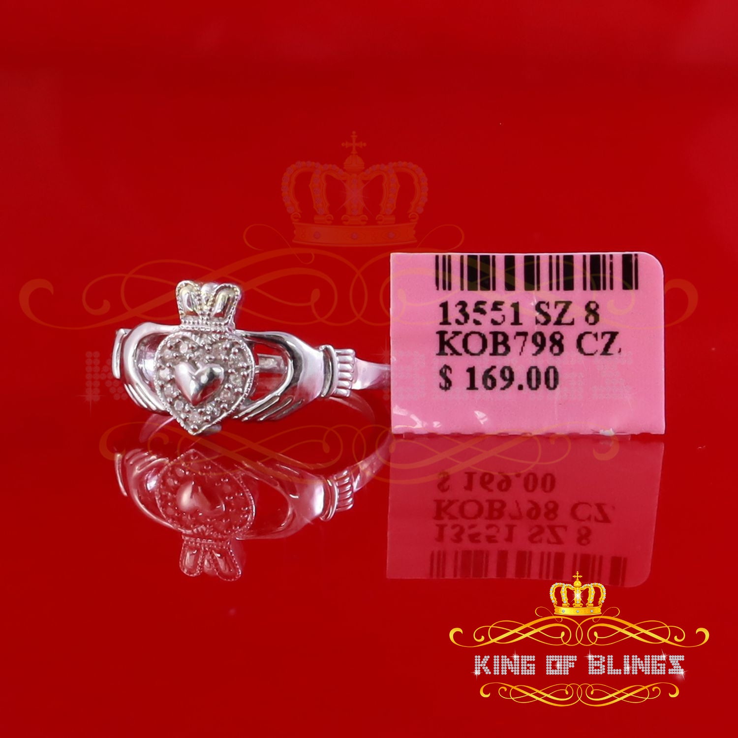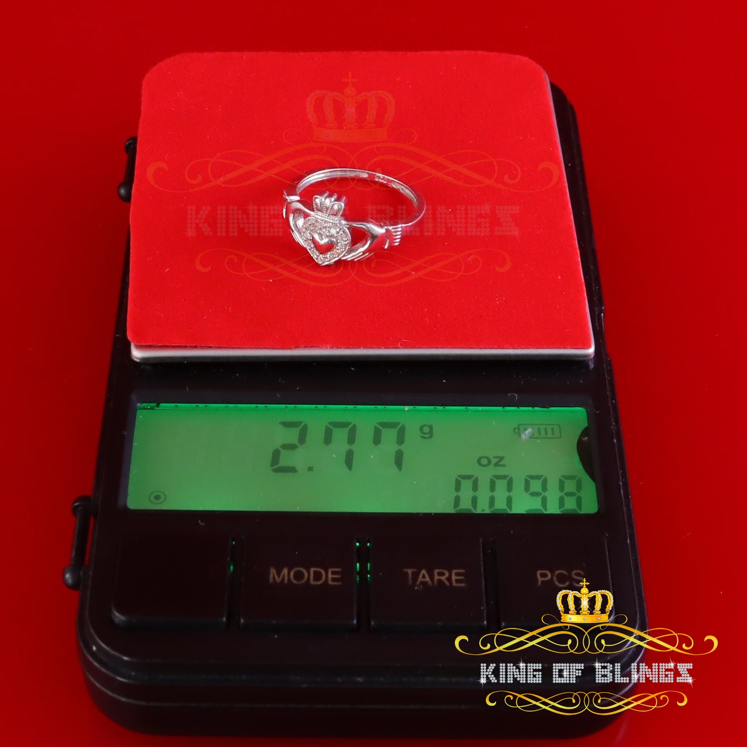 King Of Bling'sSterling White Silver 0.16ct Cubic Zirconia Claddagh Heart Crown Women Ring SZ 7