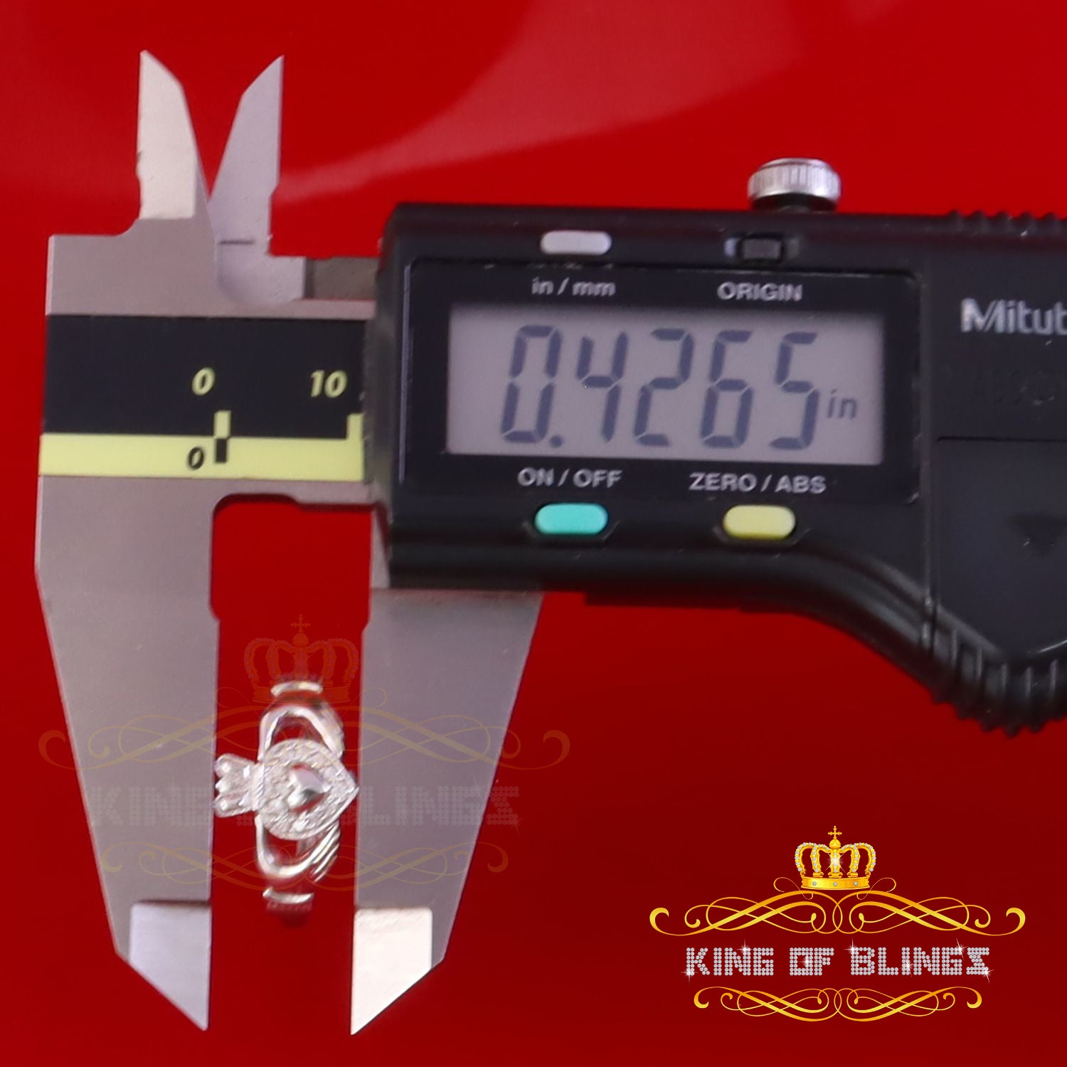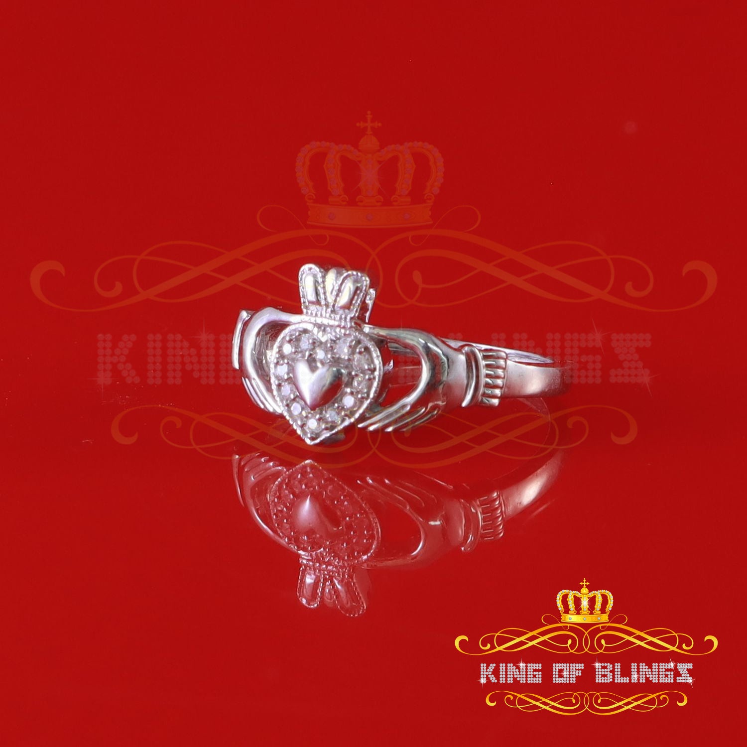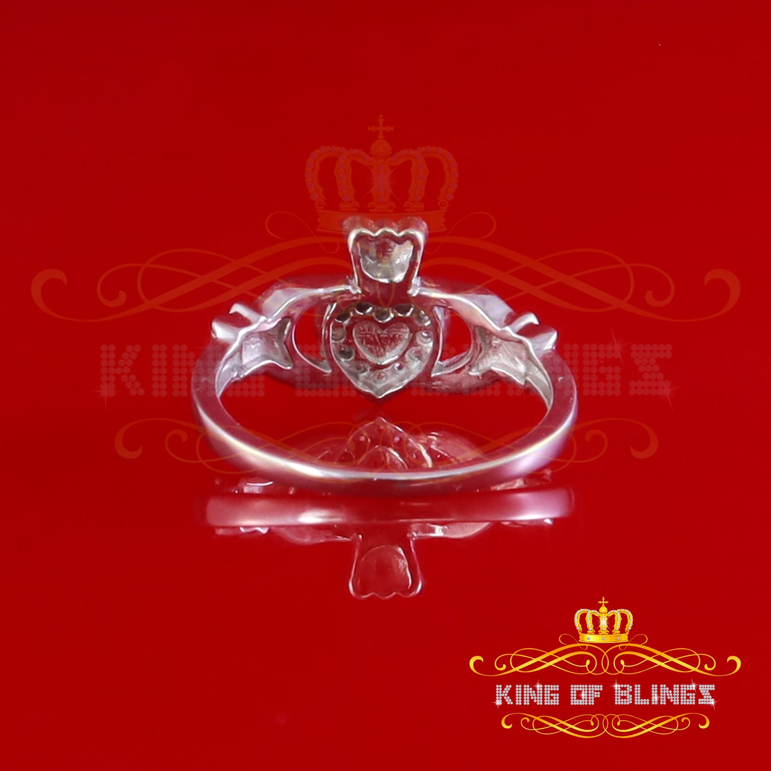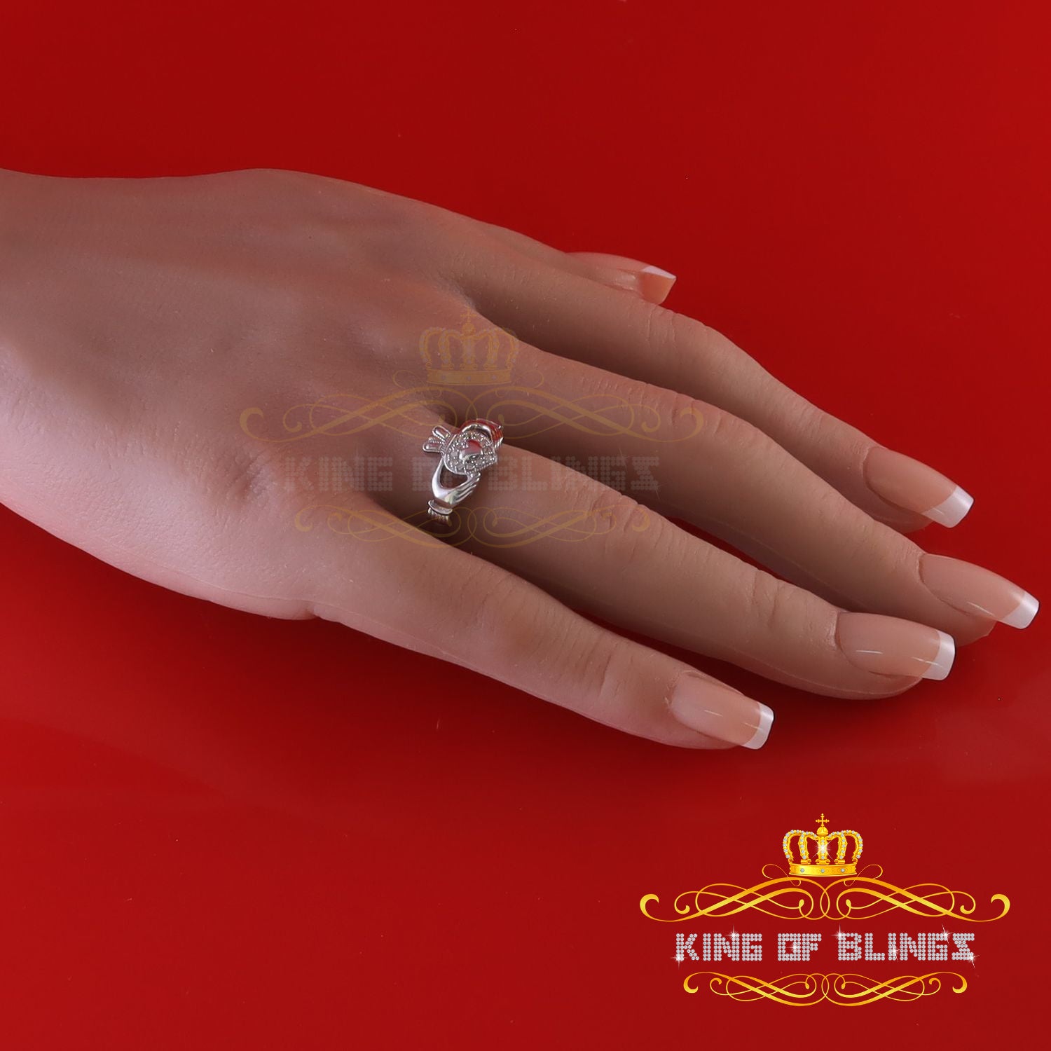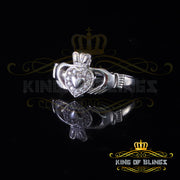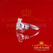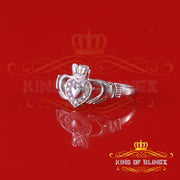 King Of Bling'sSterling White Silver 0.16ct Cubic Zirconia Claddagh Heart Crown Women Ring SZ 7
