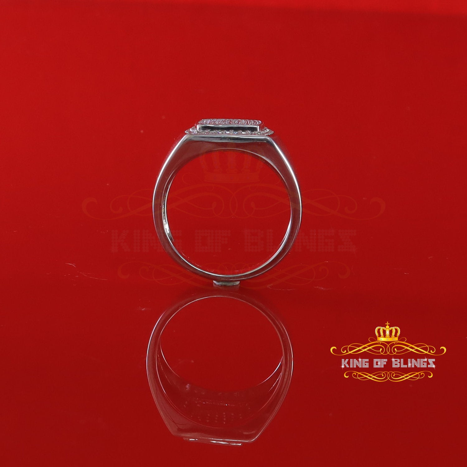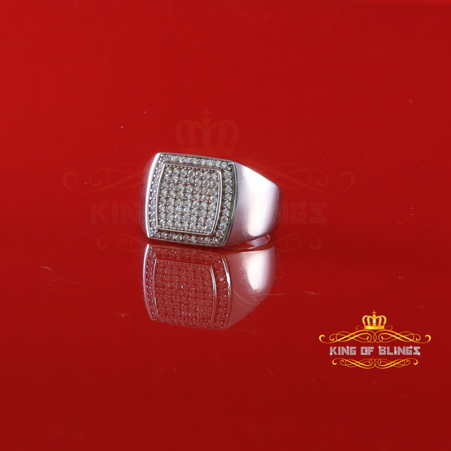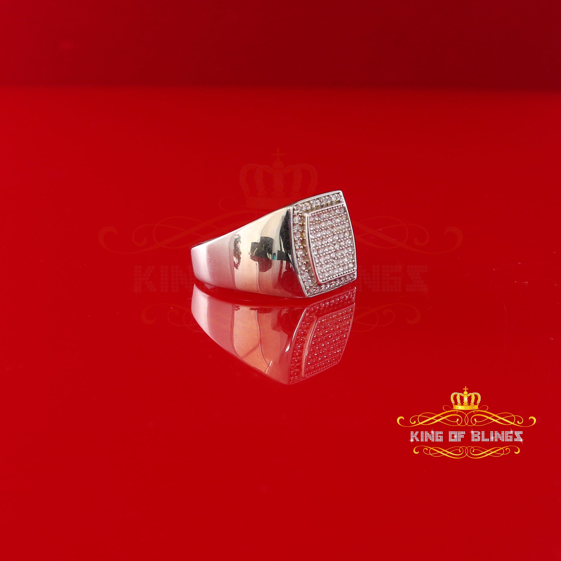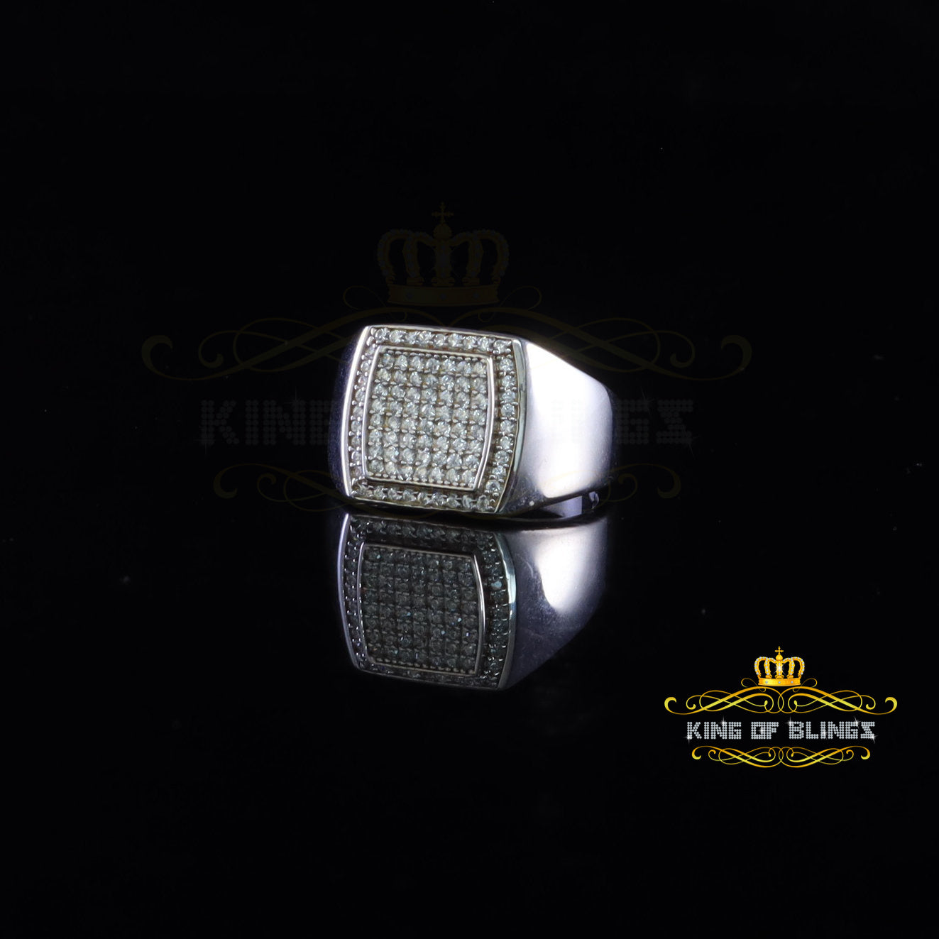 King Of Bling'sSterling White Silver Square 1.00ct Cubic Zirconia Fashion Men's Ring Size 10