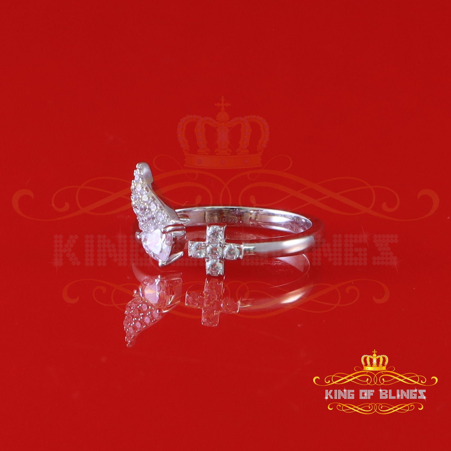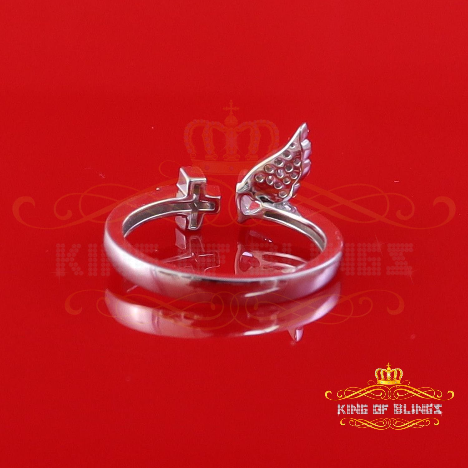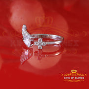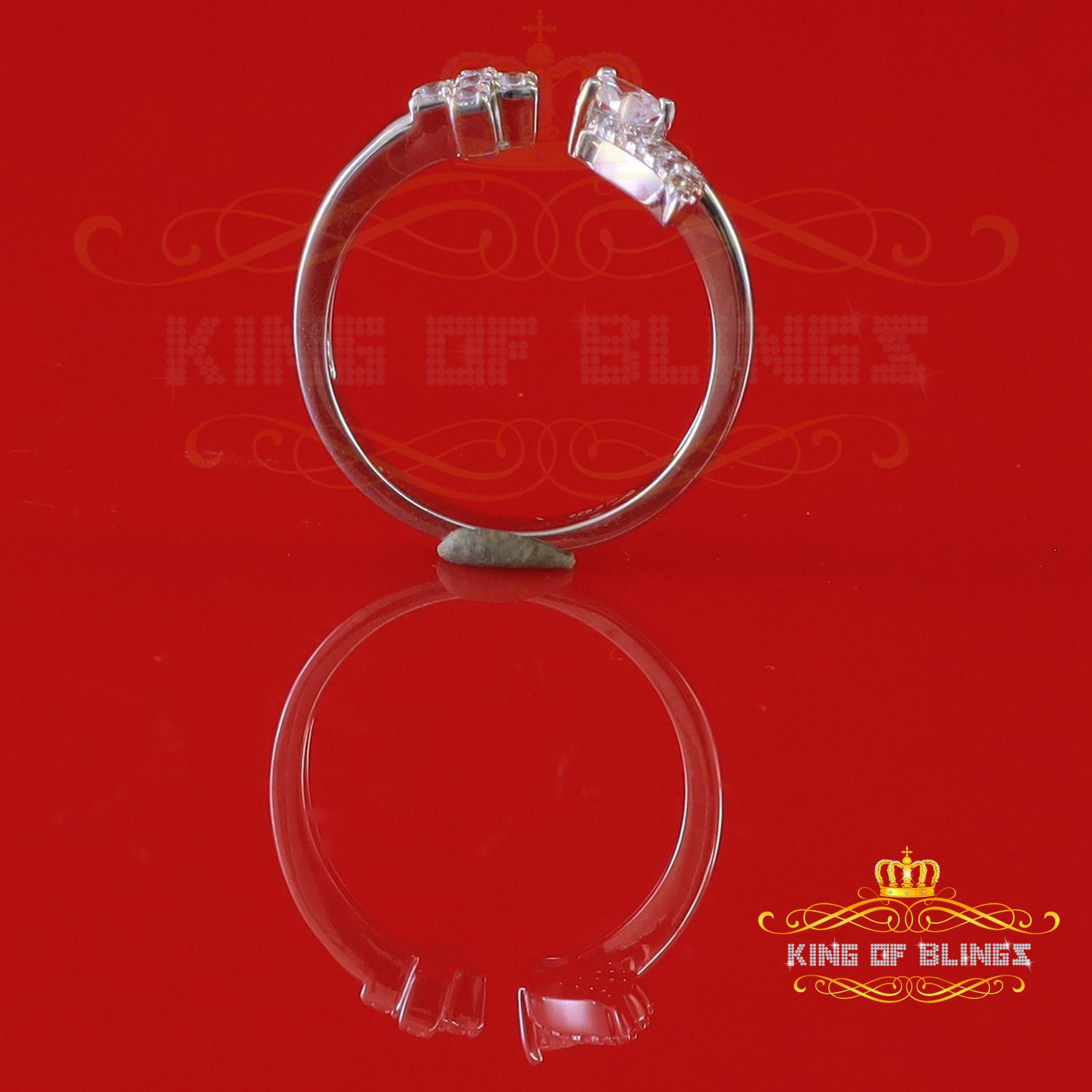 King Of Bling'sWhite Sterling Silver CZ 0.20ct Flower 7 stone Women's Silver Ring Size 8
