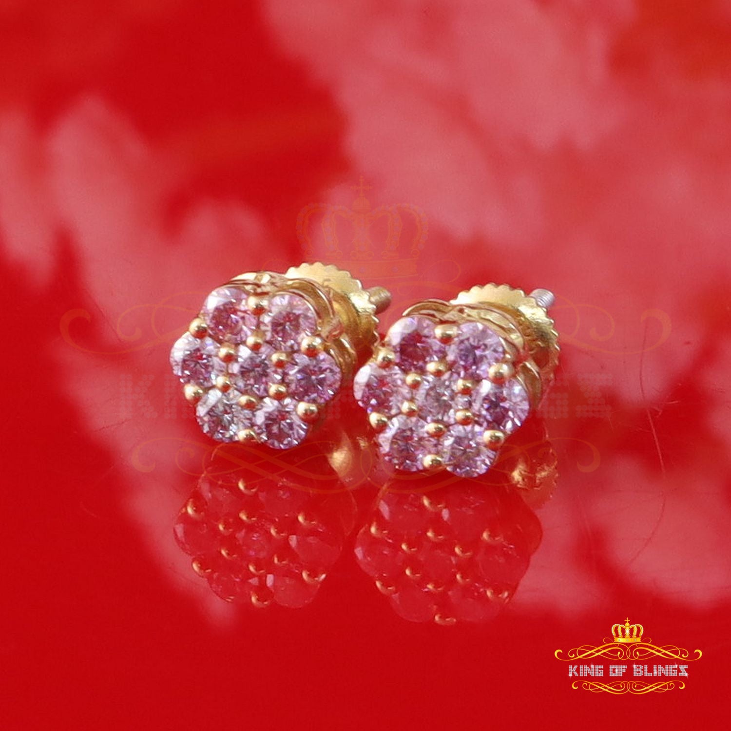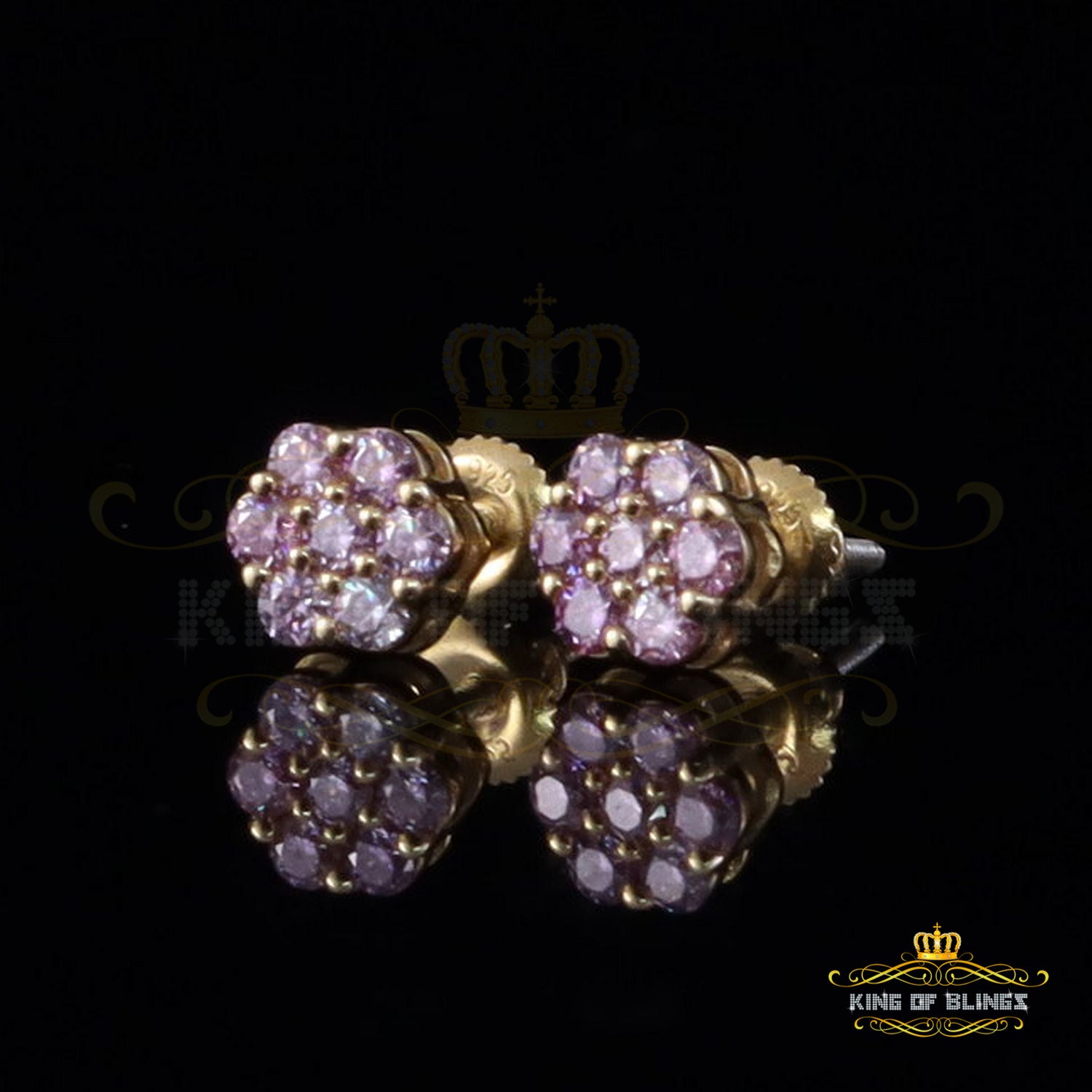 Mens/Women 925 Silver Yellow 0.50ct VVS 'D' Pink Moissanite Floral Stud Earrings