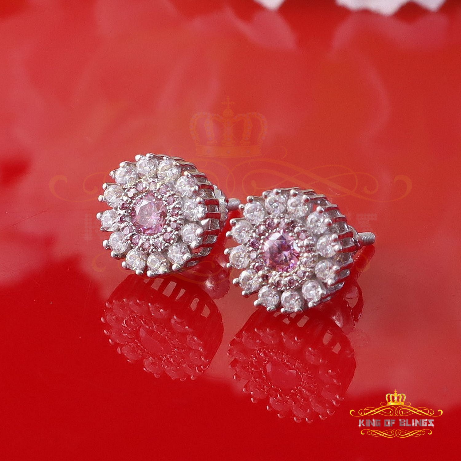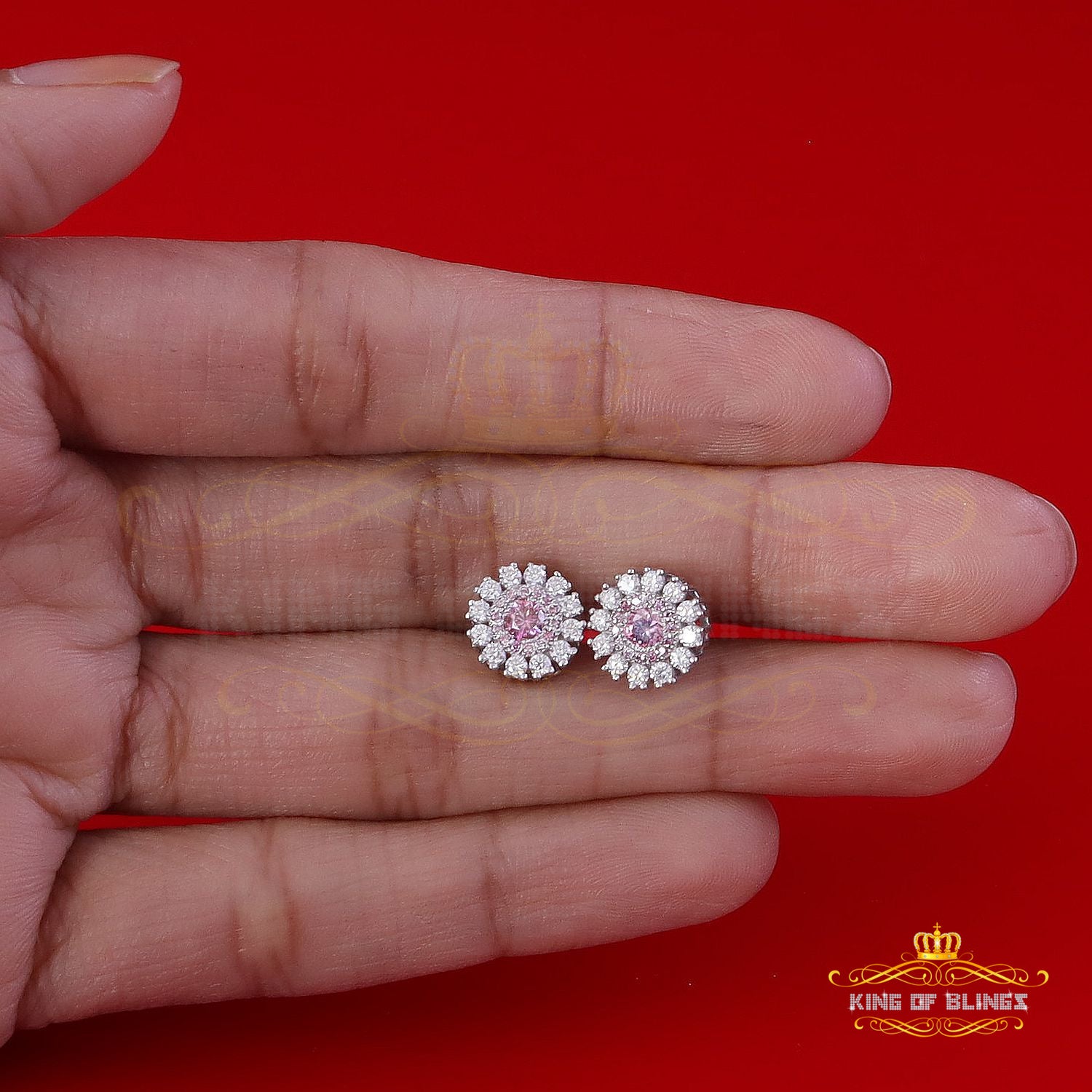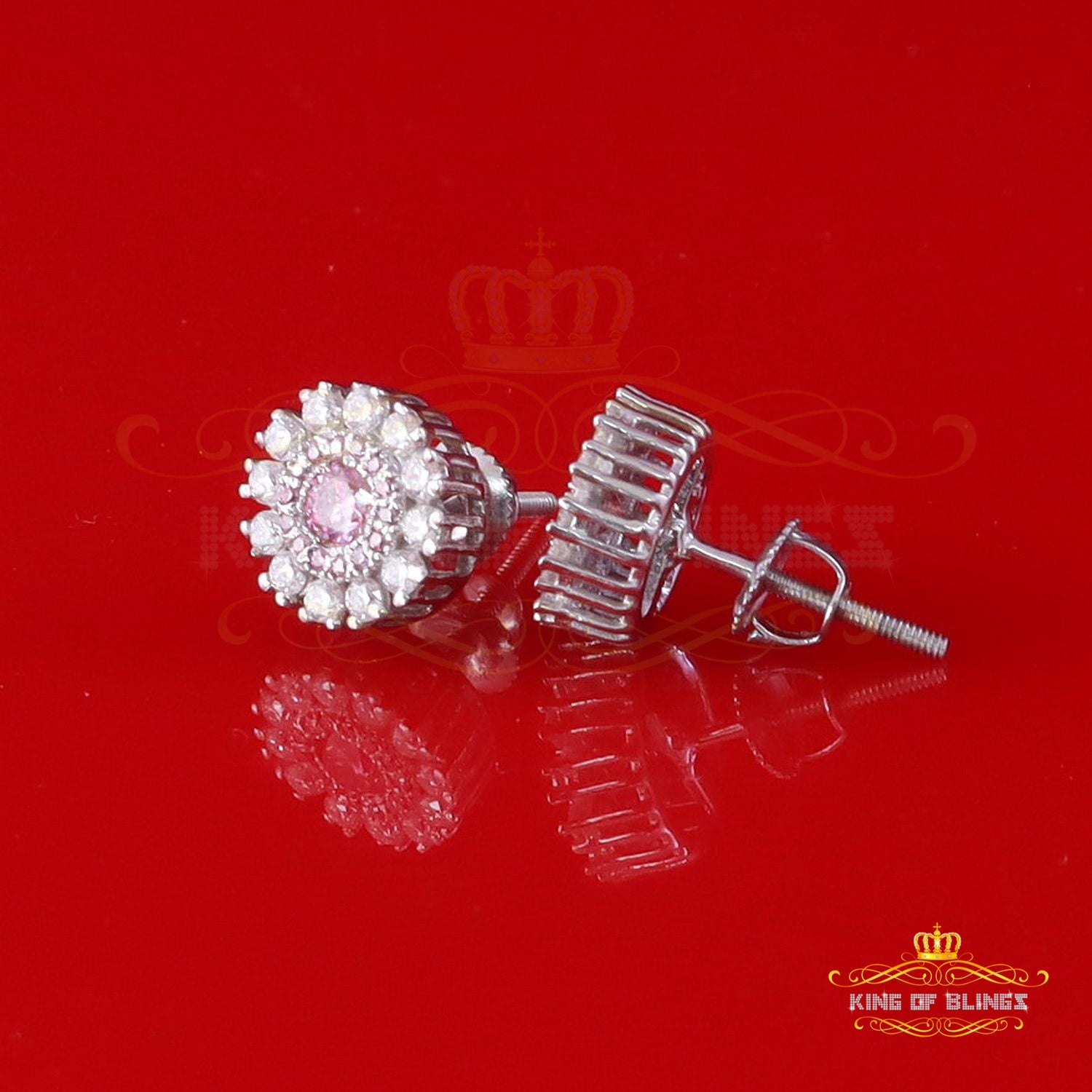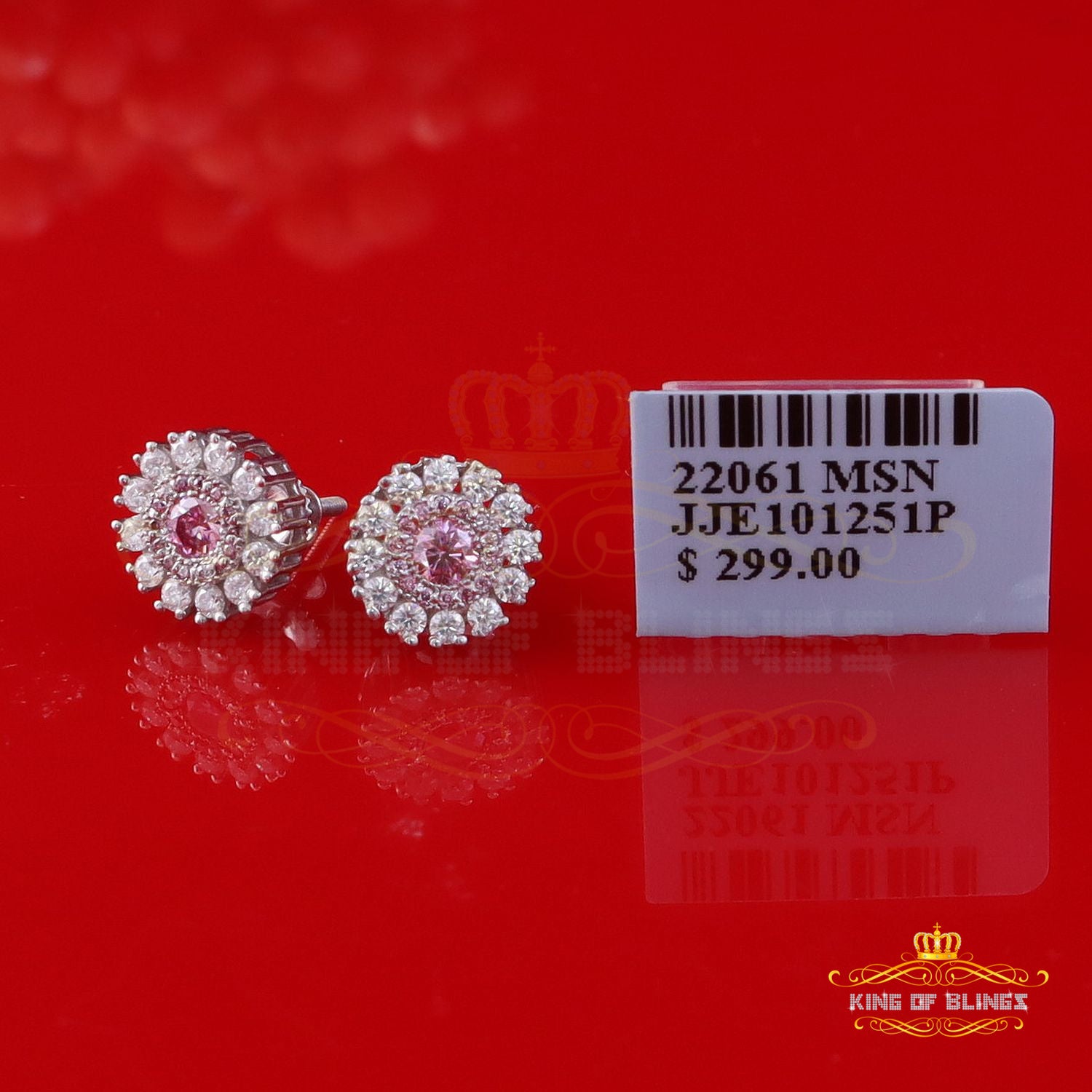 Men's/Women's 925 Silver White 1.00ct VVS 'D' Pink Moissanite Round Stud Earrings