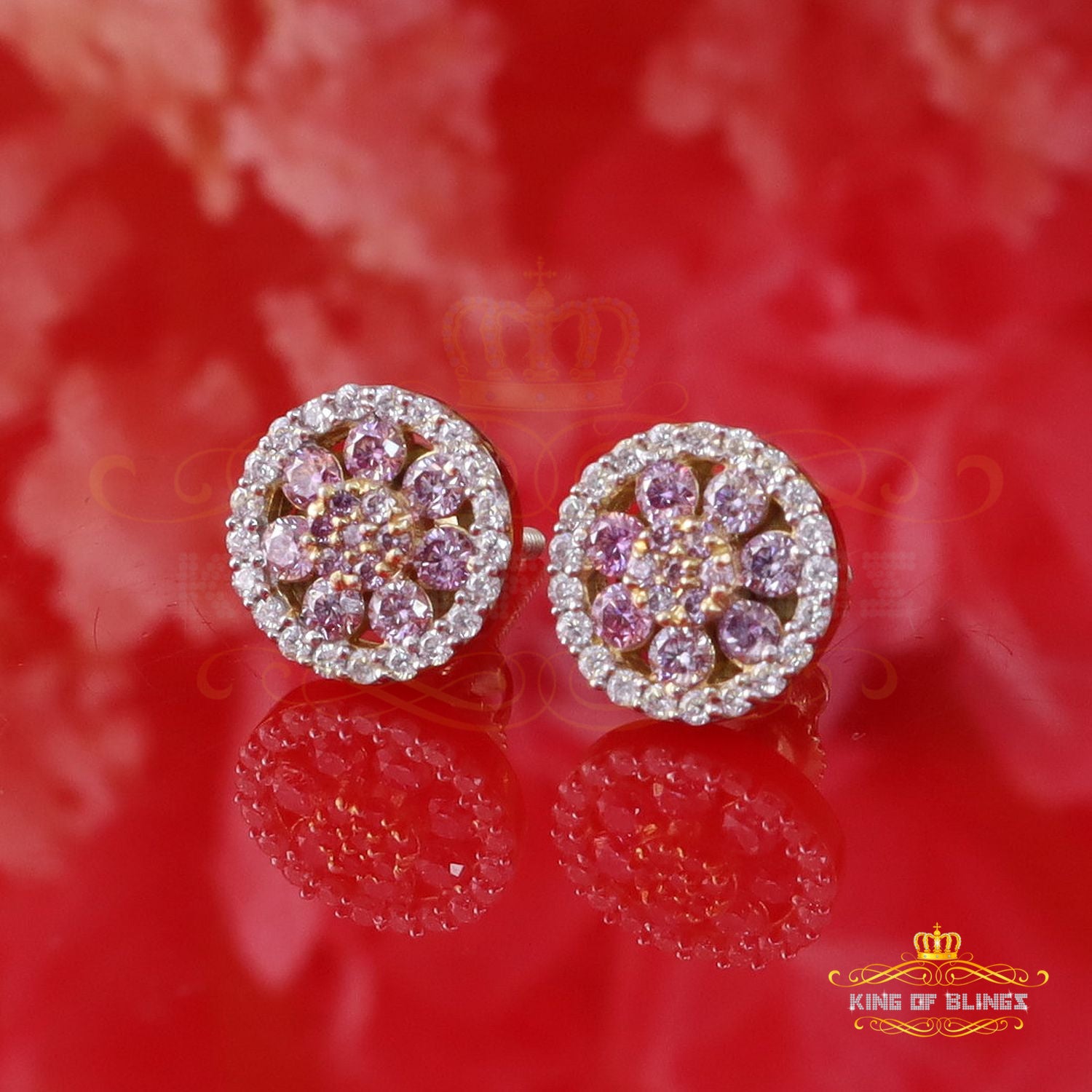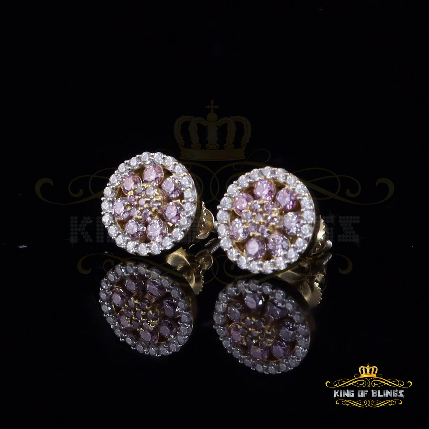 Men's/Women's 925 Silver Yellow 0.66ct VVS 'D' Pink Moissanite Round Stud Earrings