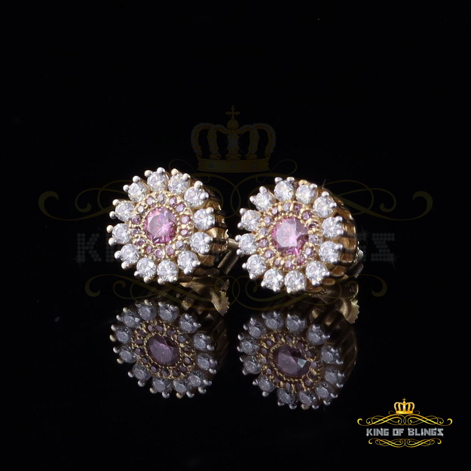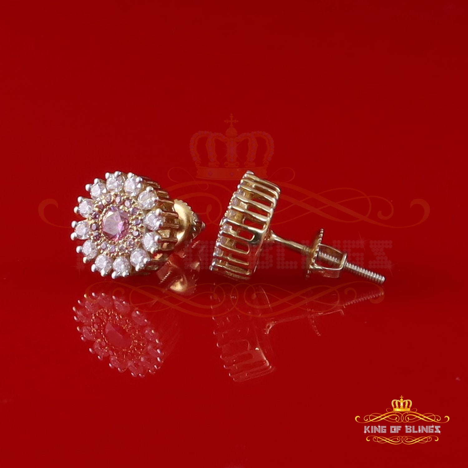 Men's/Women's 925 Silver Yellow 1.00ct VVS 'D' Pink Moissanite Round Stud Earrings