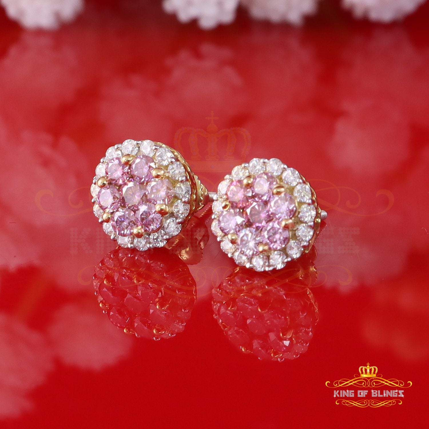 Men's/Women's 925 Silver Yellow 1.33ct VVS 'D' Pink Moissanite Round Stud Earrings