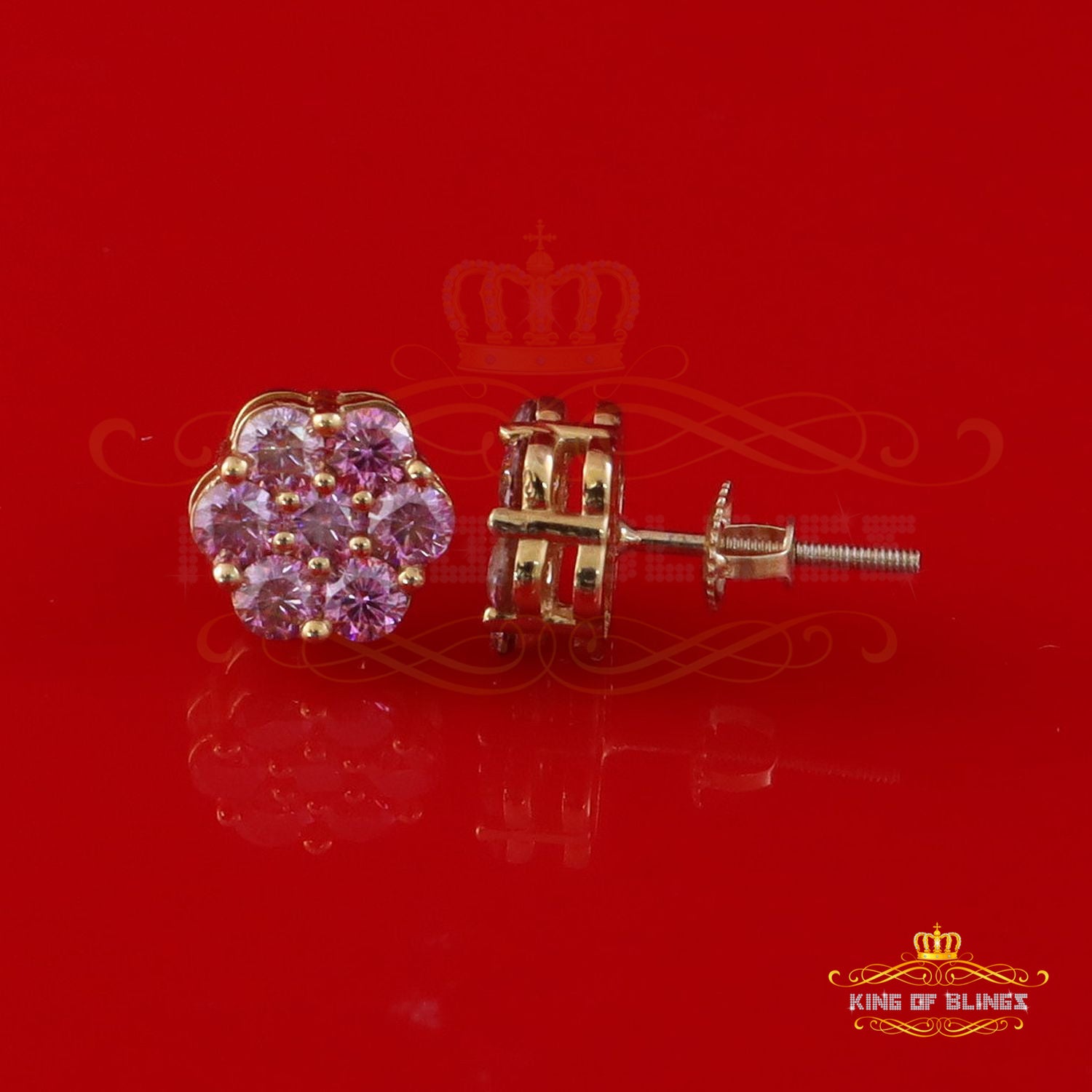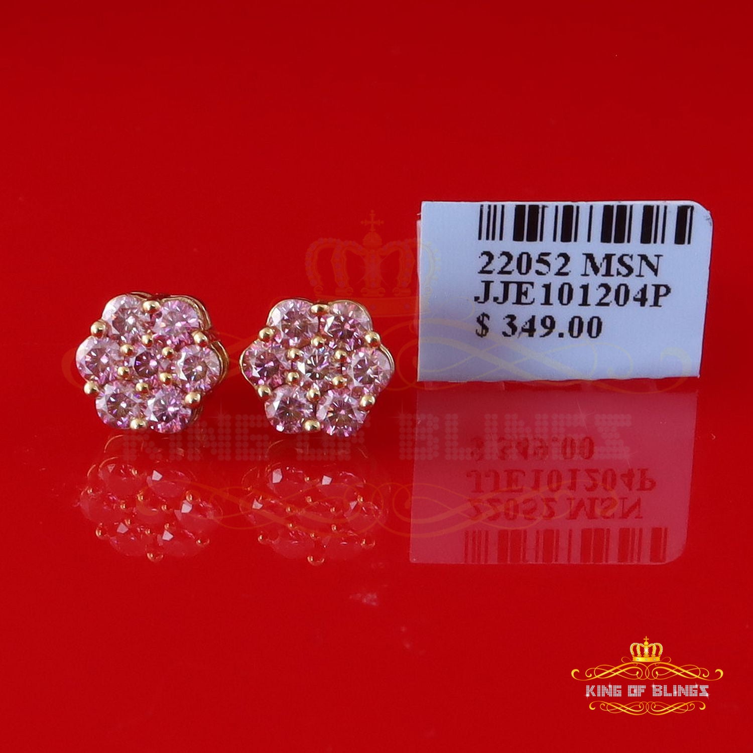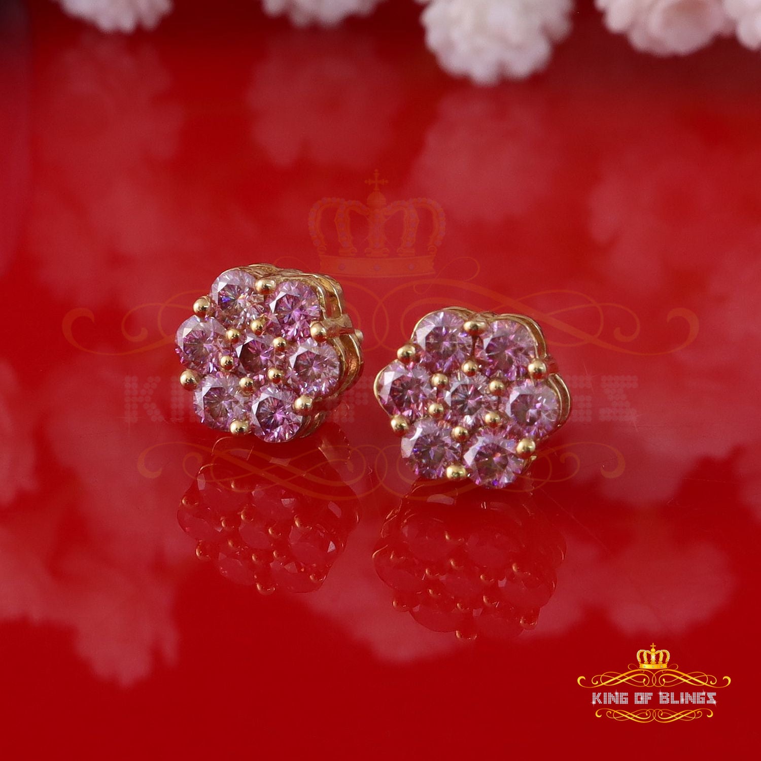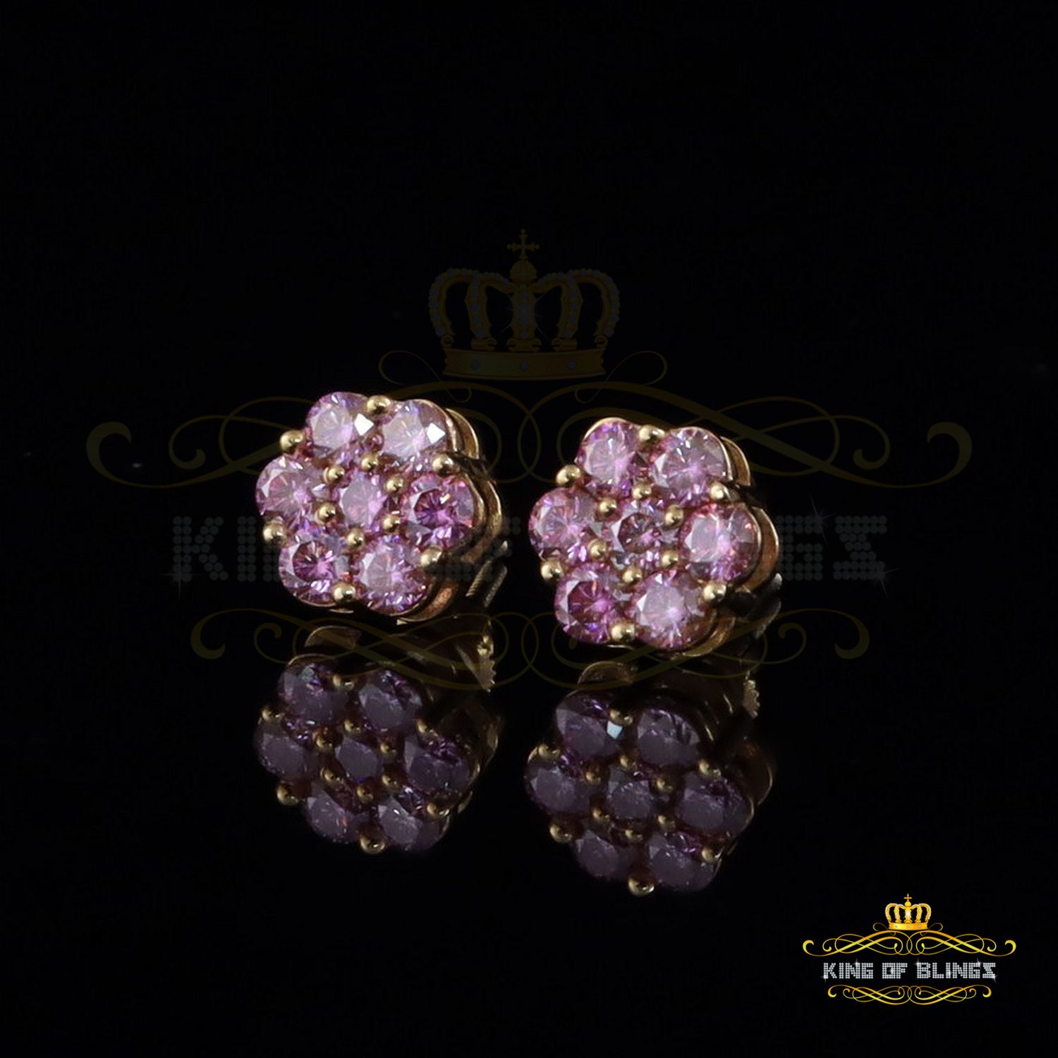 Mens/Women's 925 Silver Yellow 1.66ct VVS D Pink Moissanite Floral Stud Earrings