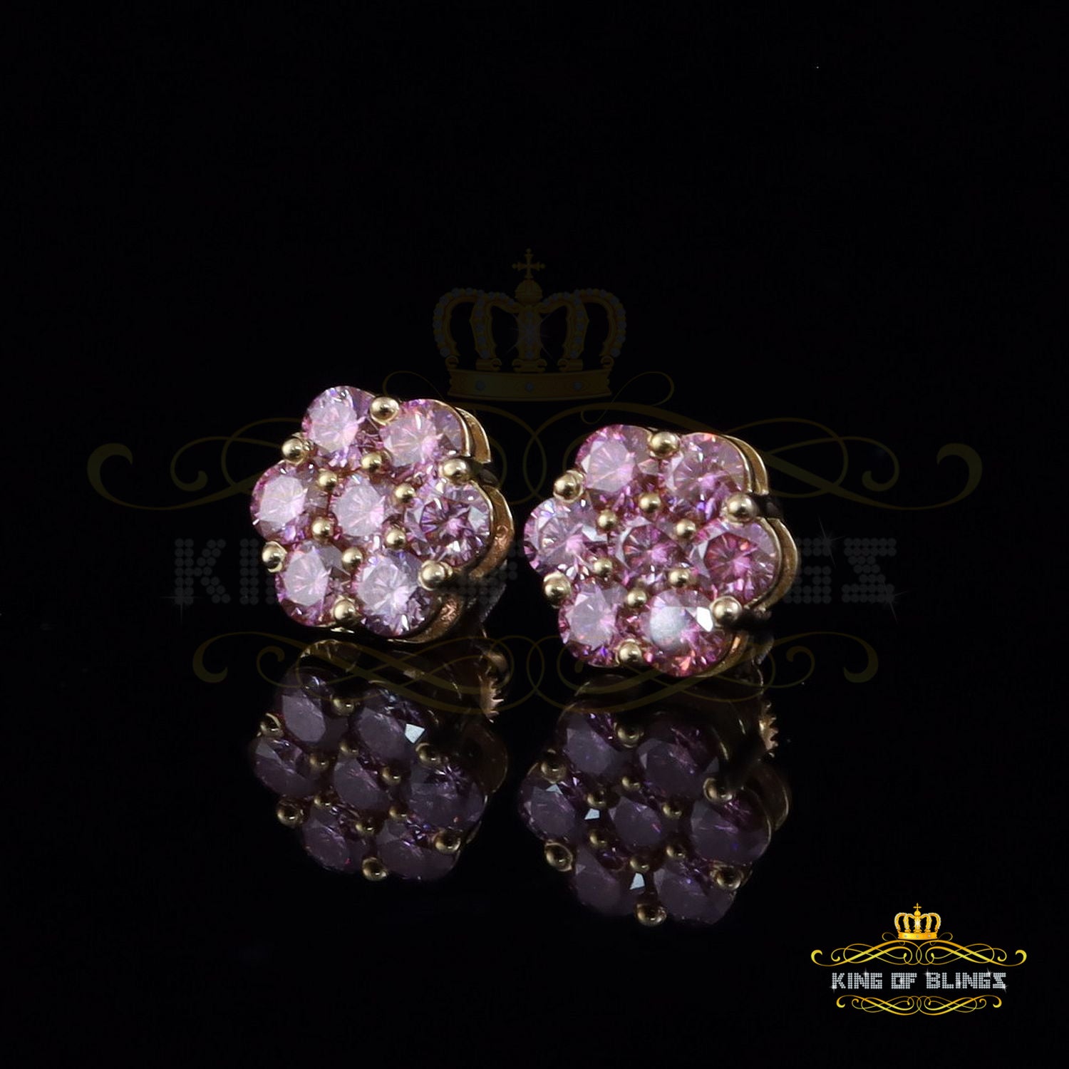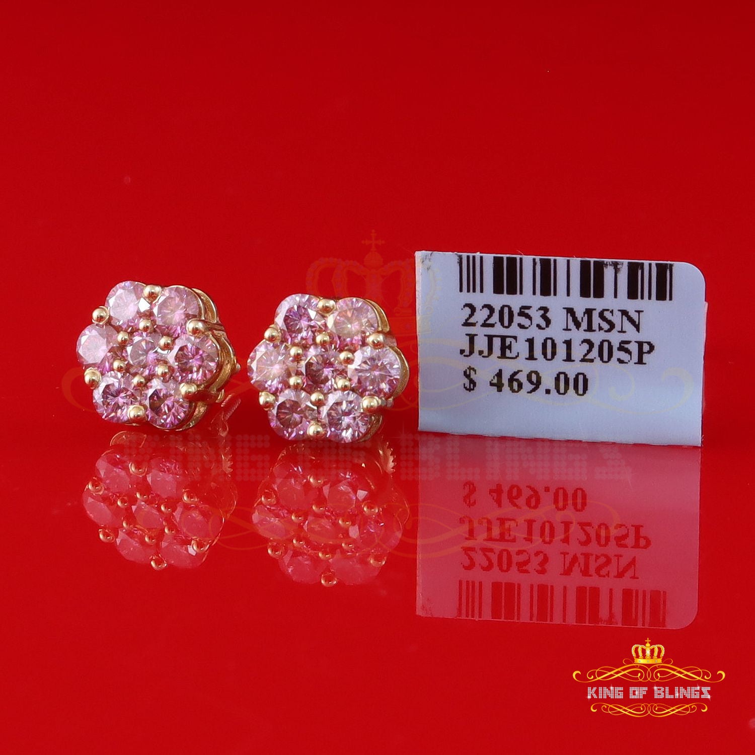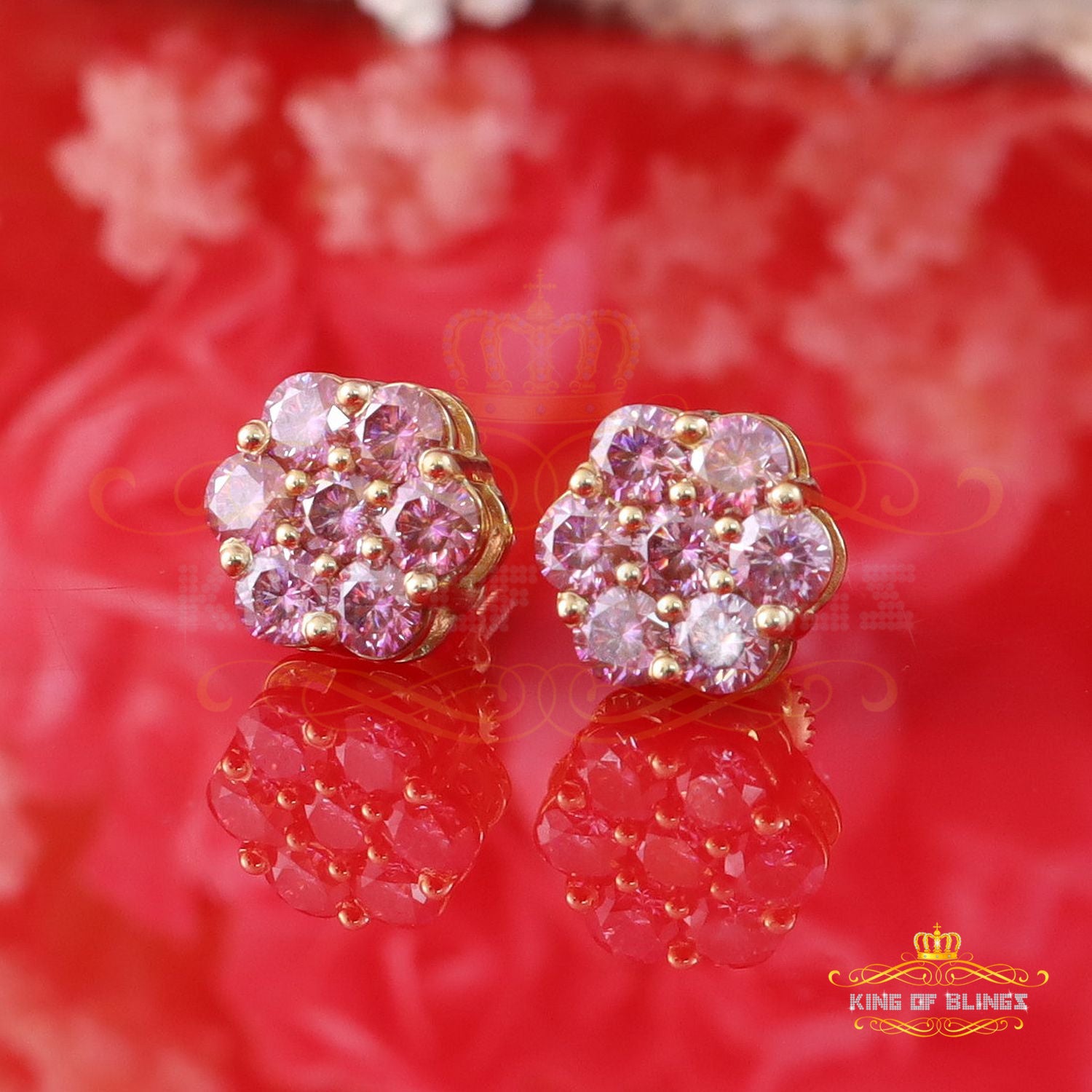 Mens/Women's 925 Silver Yellow 2.25ct VVS D Pink Moissanite Floral Stud Earrings