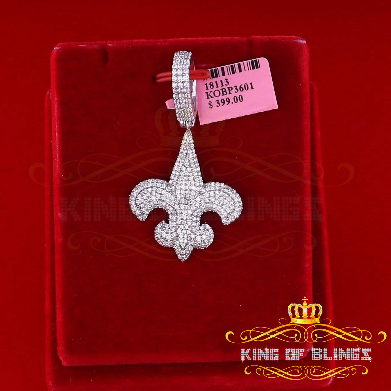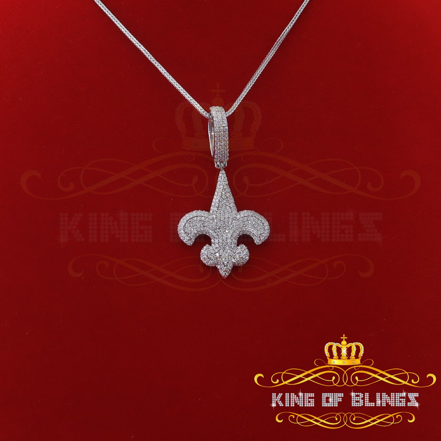 King Of Bling's Promise Sterling Silver Fleur de Lis White Pendant with 7.04ct Cubic Zirconia