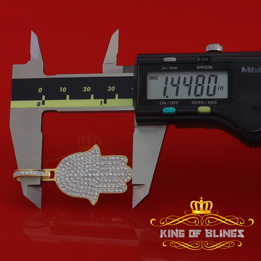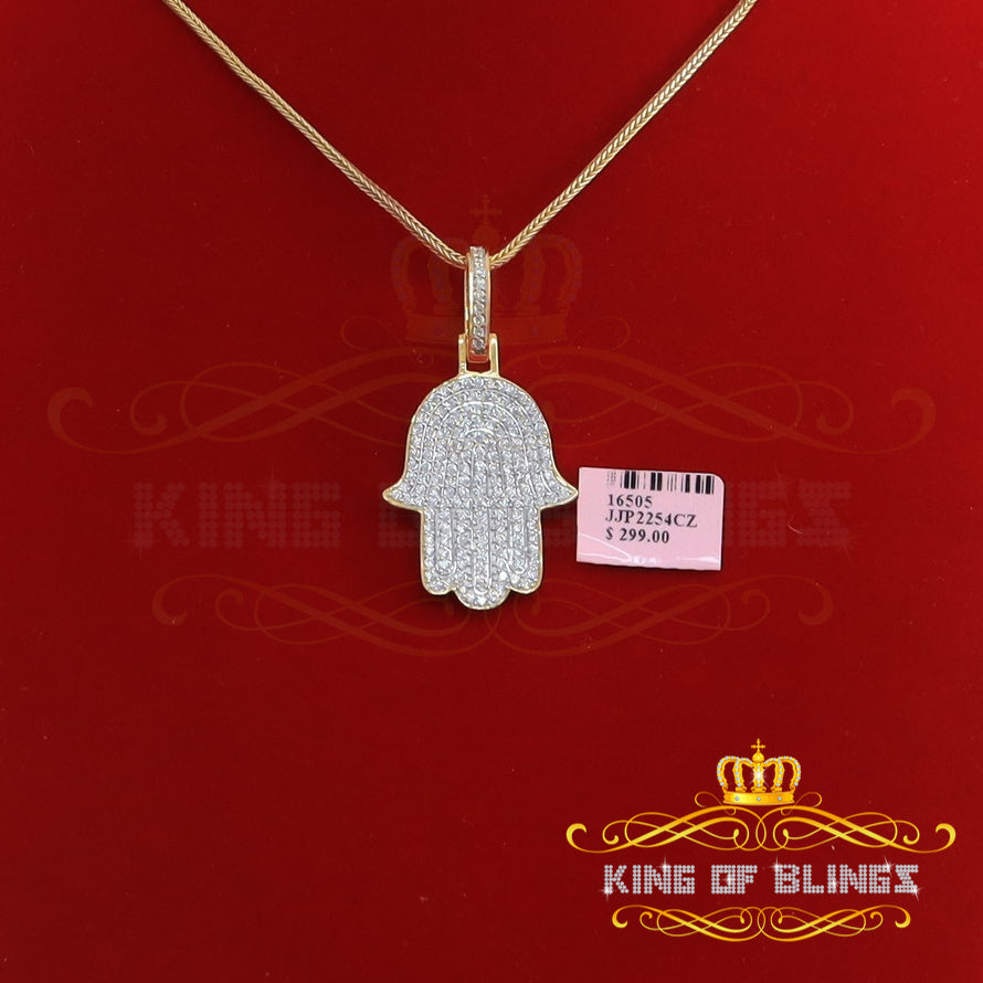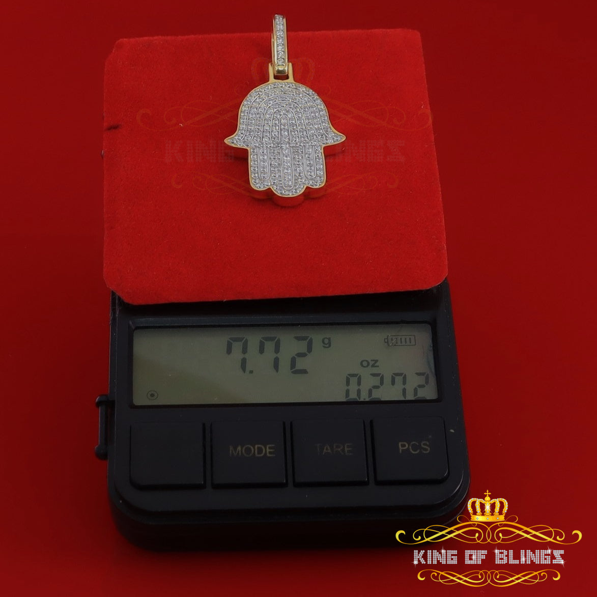 King Of Bling's Promise Yellow Sterling silver "HAMSA" Shape Pendant with 3.38ct Cubic Zirconia