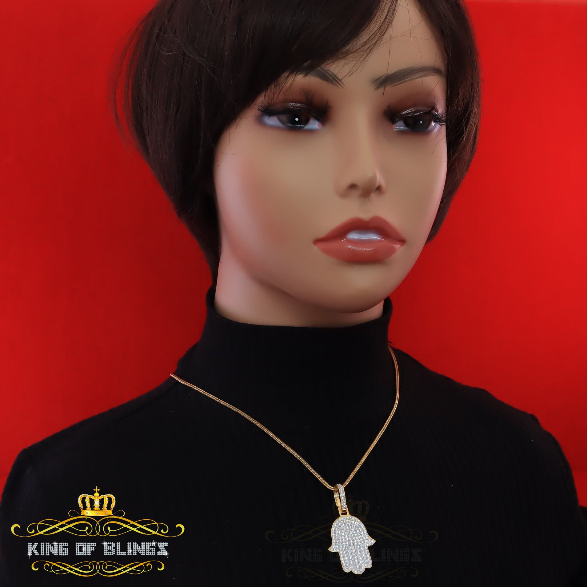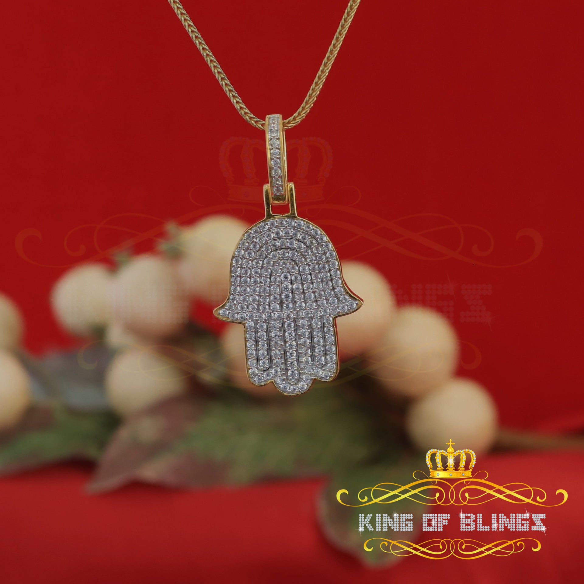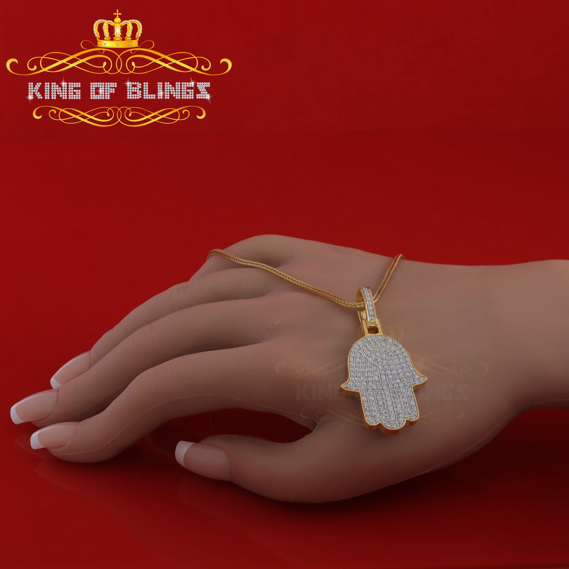 King Of Bling's Promise Yellow Sterling silver "HAMSA" Shape Pendant with 3.38ct Cubic Zirconia