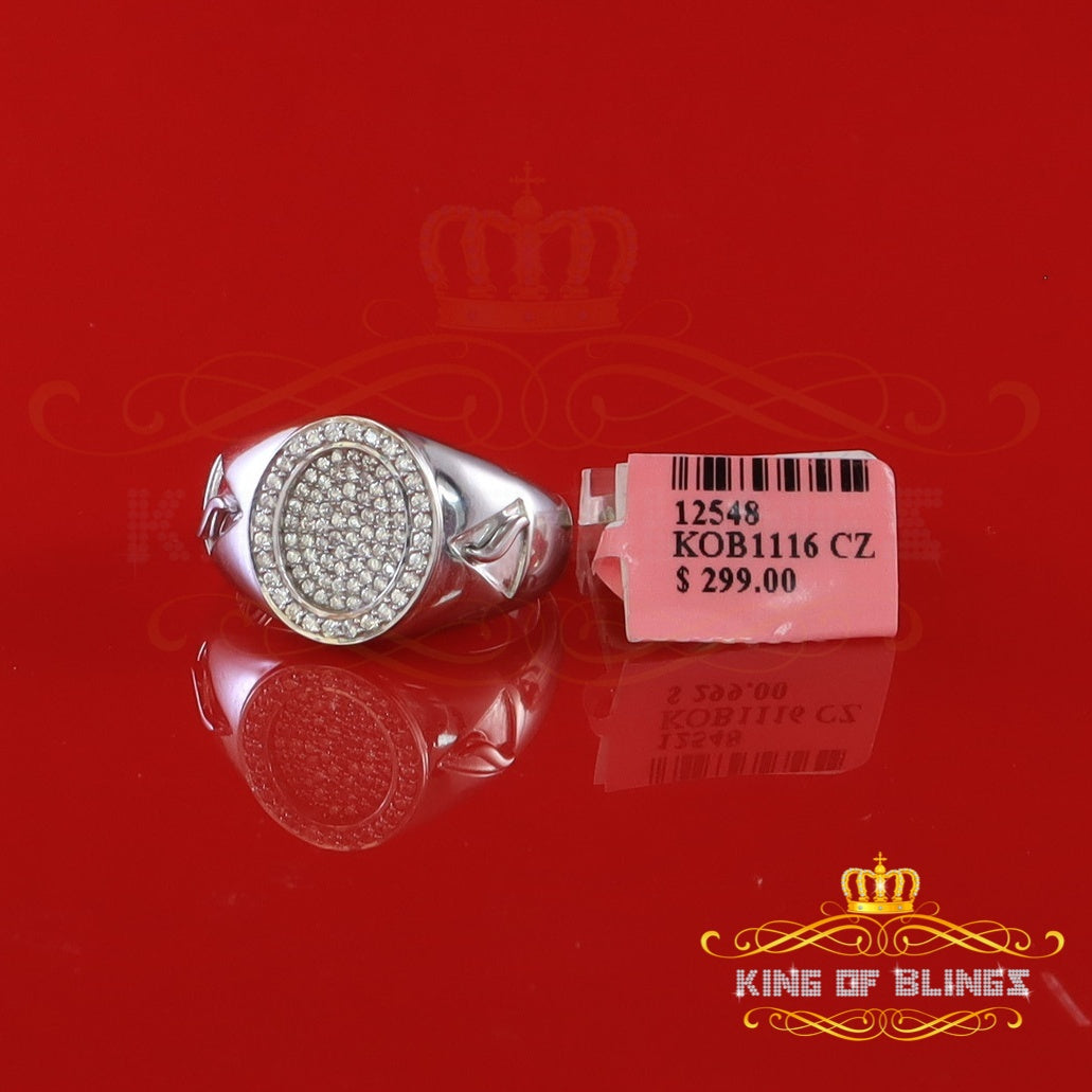 King Of Bling'sSilver Sterling White 1.50ct Cubic Zirconia Wide Oval Men's Ring Big Size 11