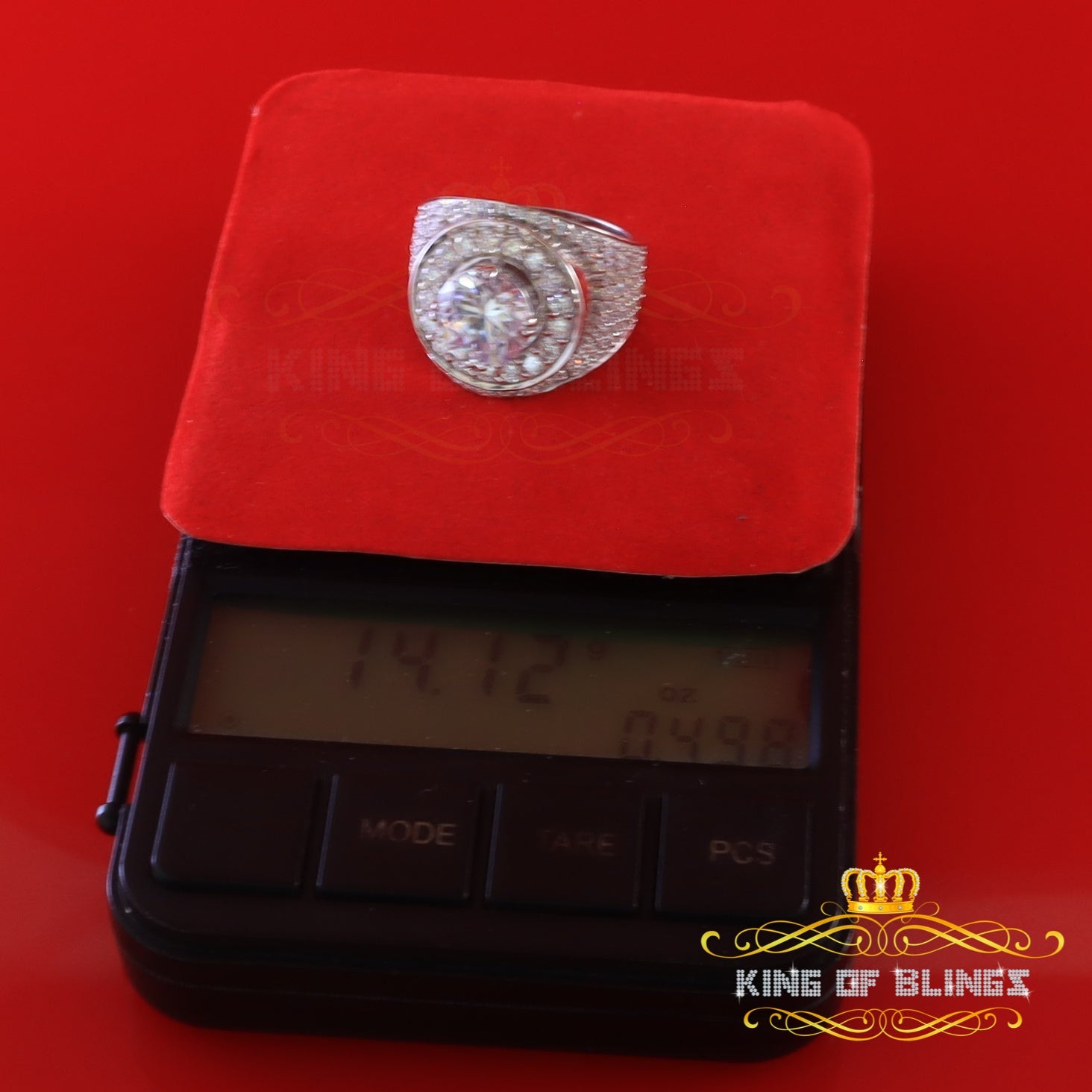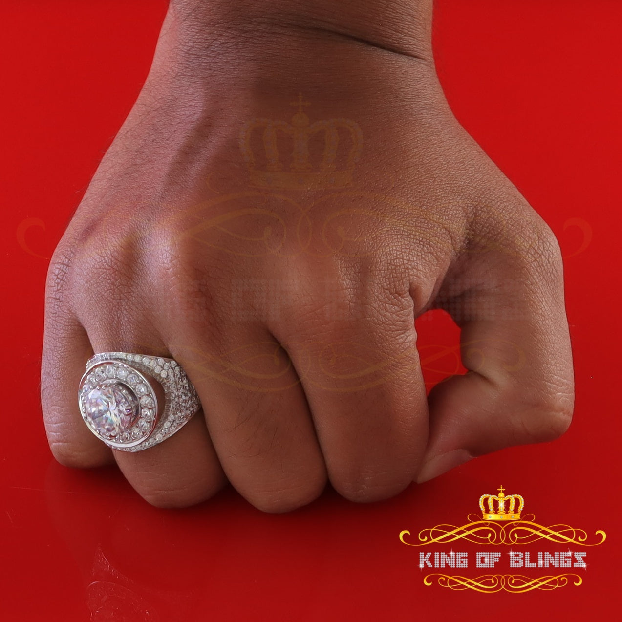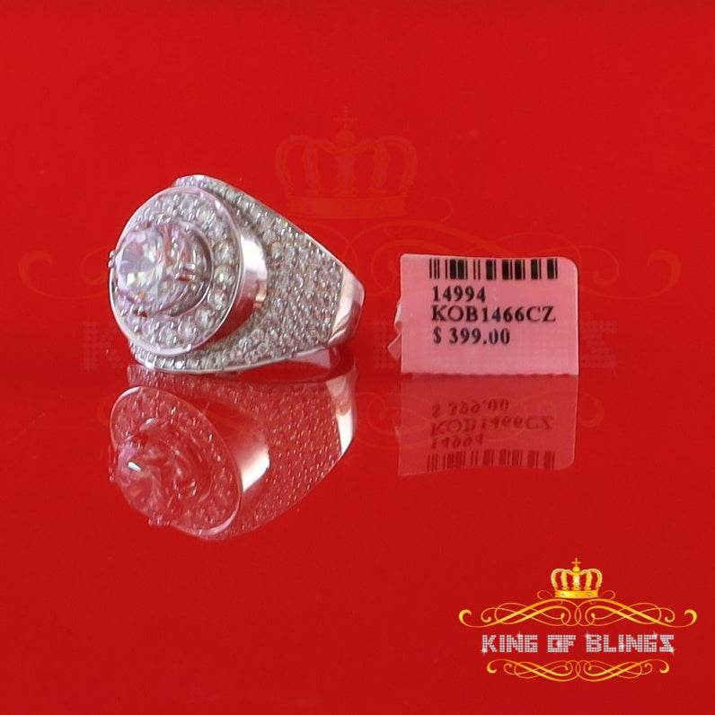 King Of Bling'sSterling Silver White 9.25ct Cubic Zirconia Round Cocktail Men's Ring Size 10