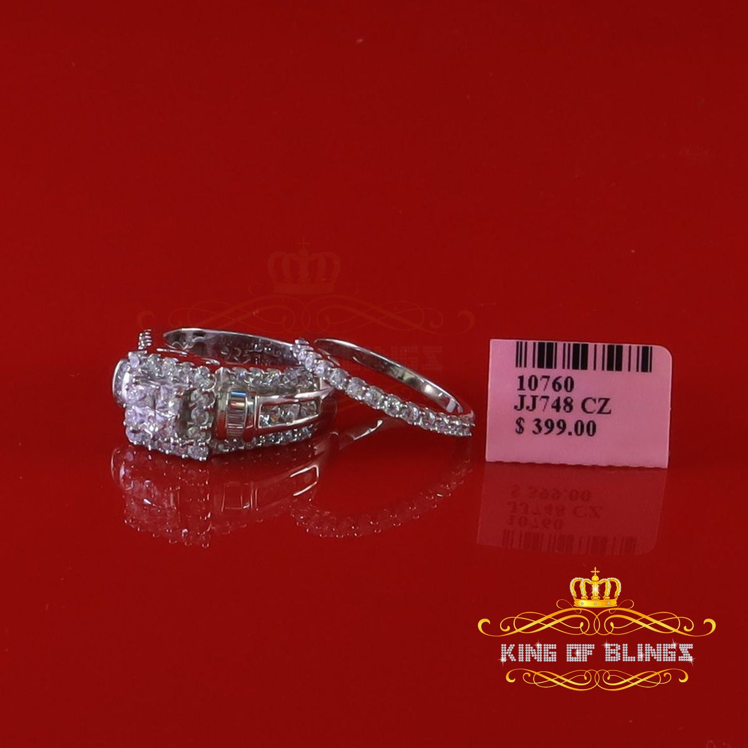 King Of Bling'sWhite 5.00ct Cubic Zirconia Silver 3 Piece Bridal Fashion Womens Ring size 7