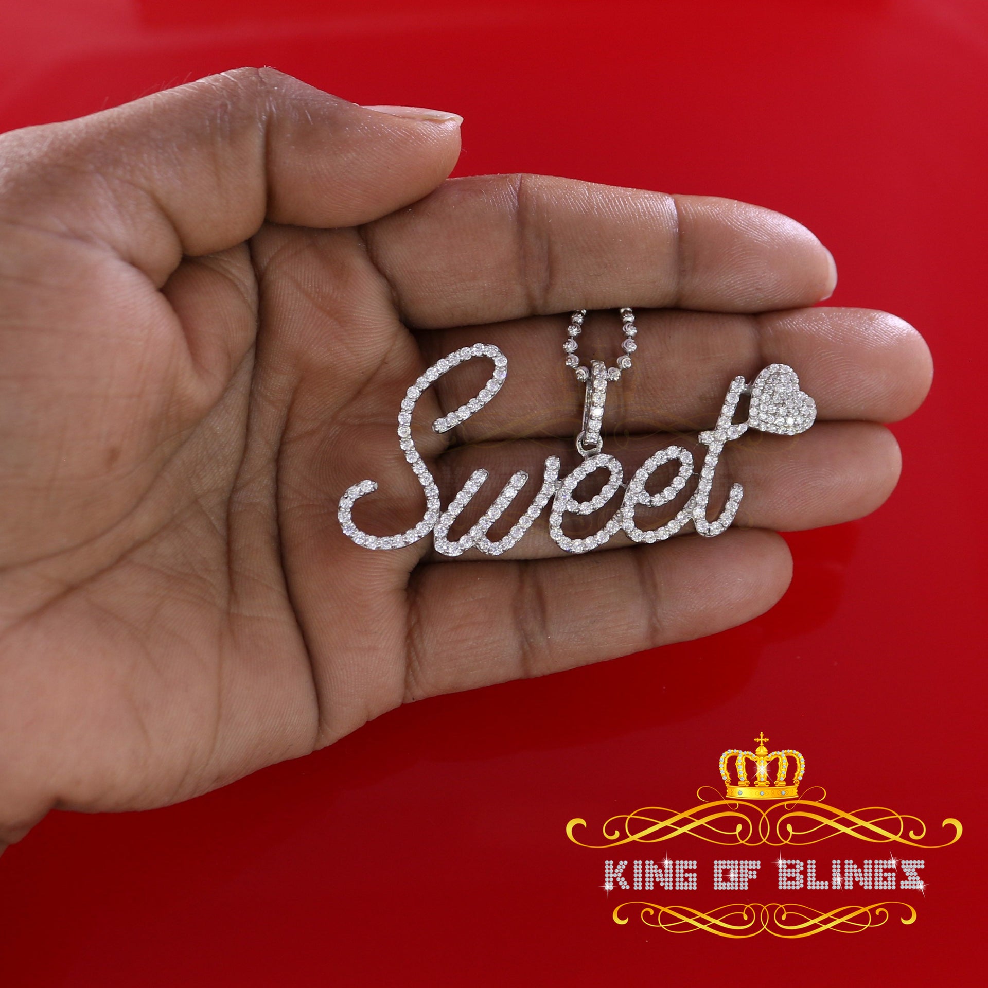 King Of Bling's White 925 Fancy Sterling Silver Sweet Tiny Heart Pendant 4.26ct Cubic Zirconia