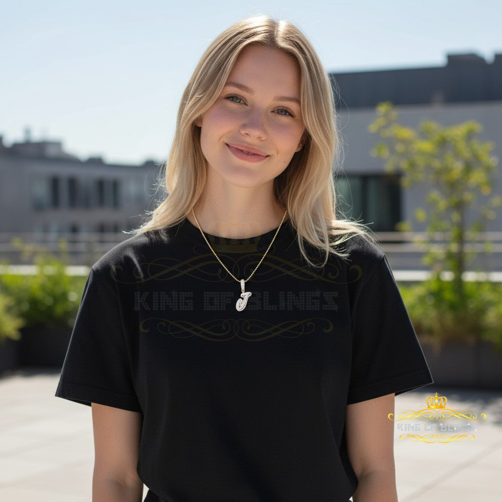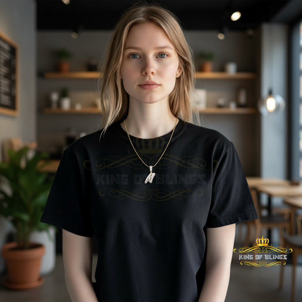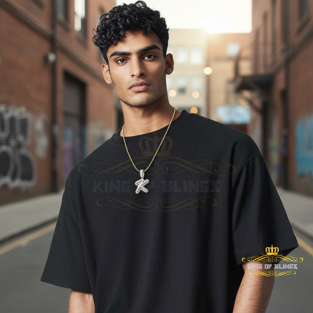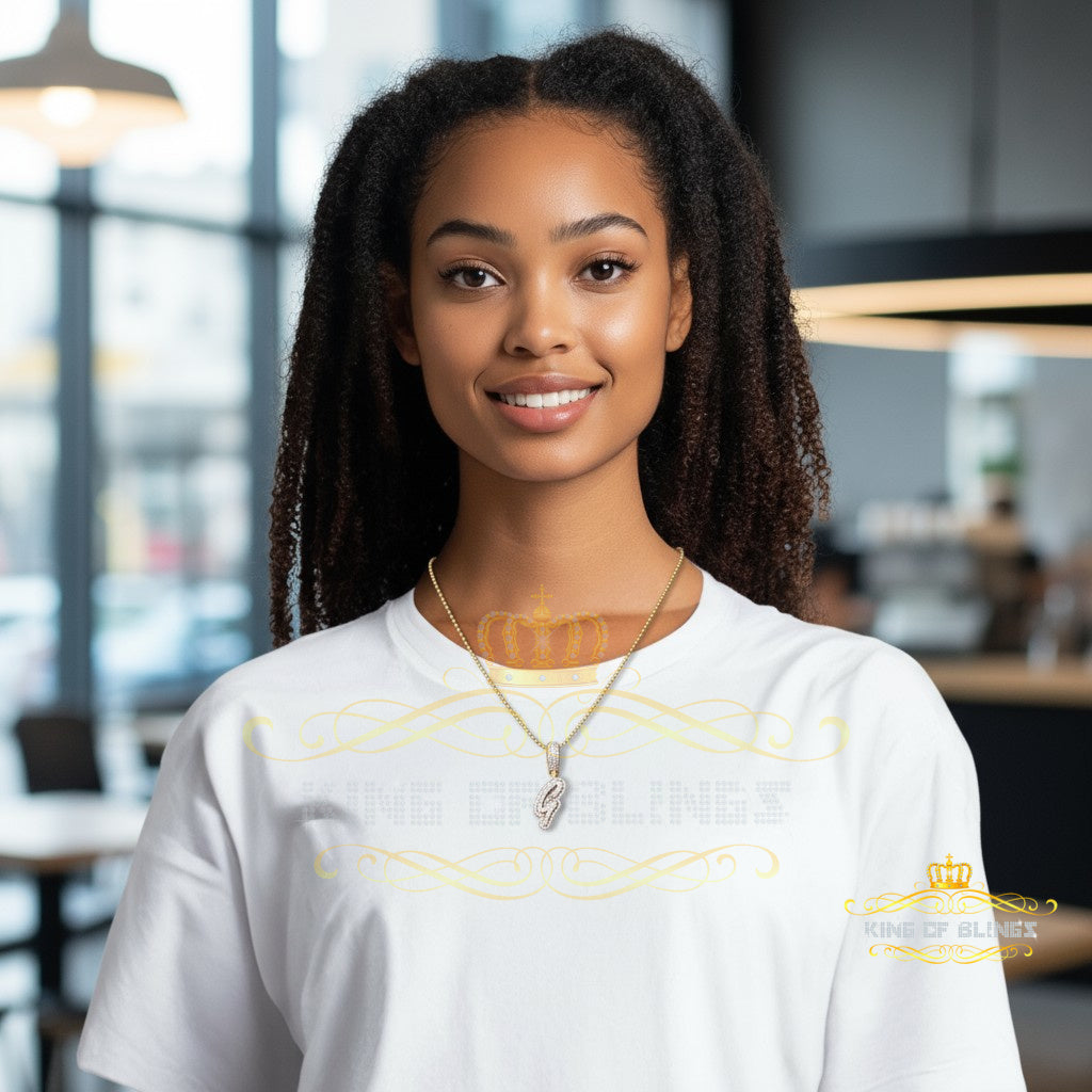 King Of Bling's White Cursive 3D Alphabet Shape 925 Sterling Silver Cubic Zirconia Pendant