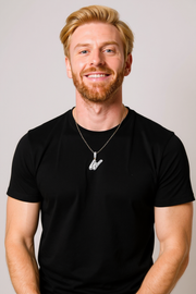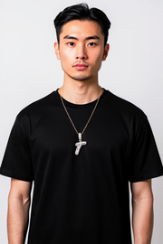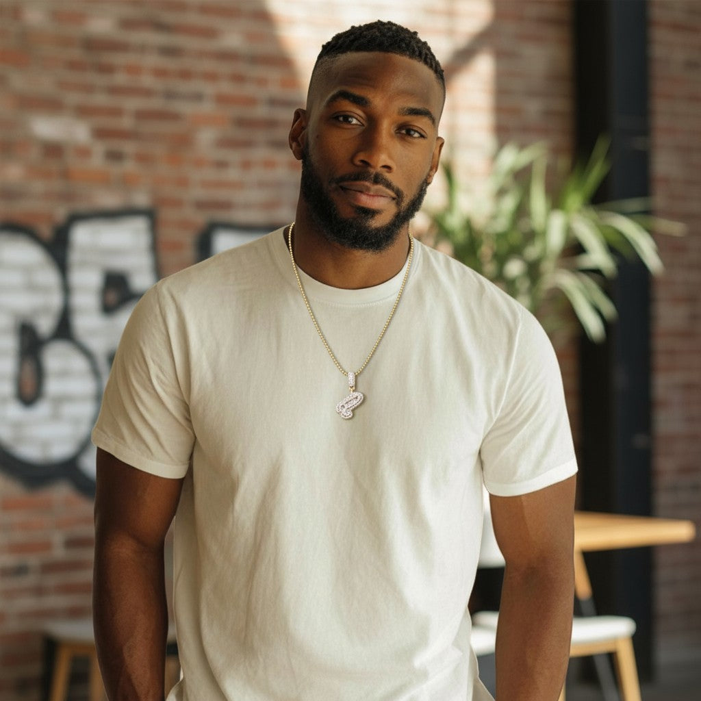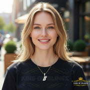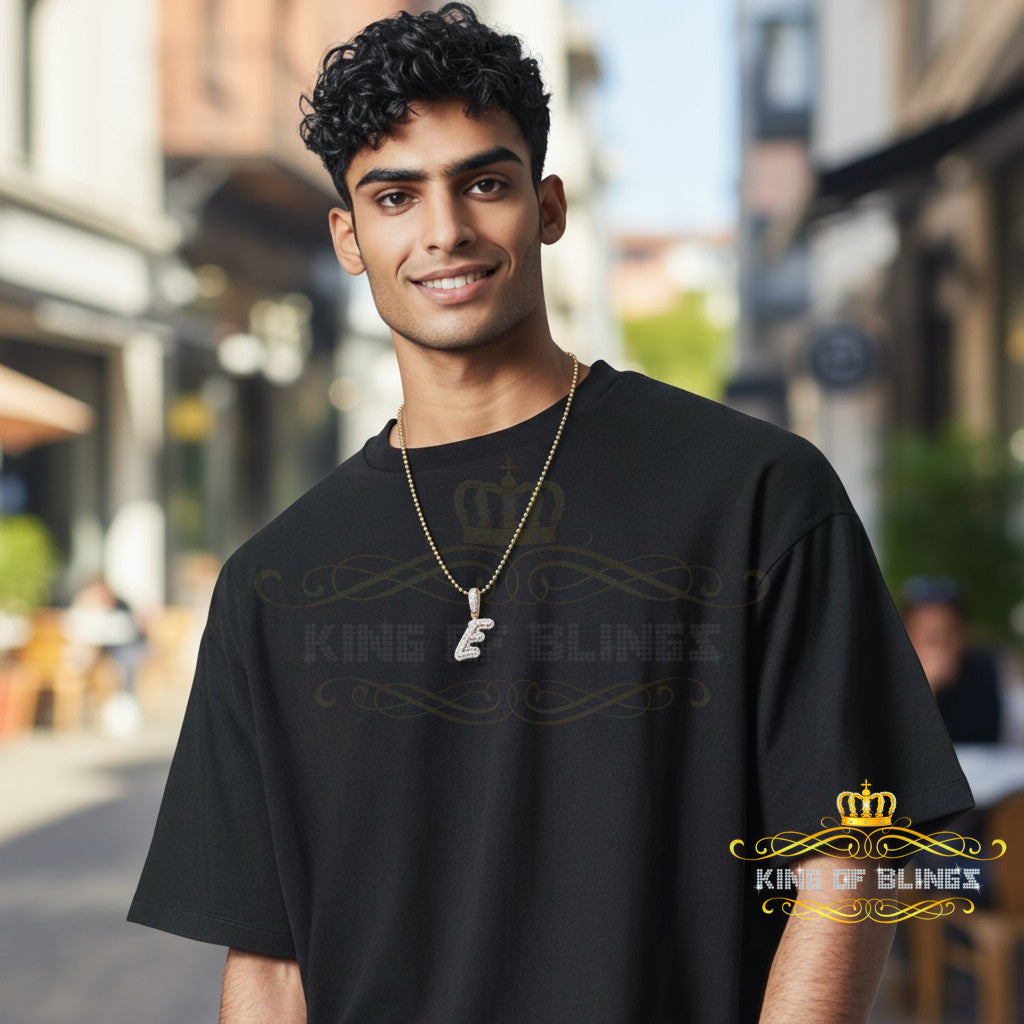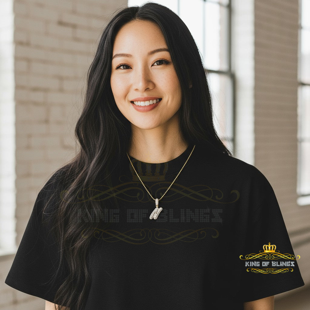 King Of Bling's White Cursive 3D Alphabet Shape 925 Sterling Silver Cubic Zirconia Pendant