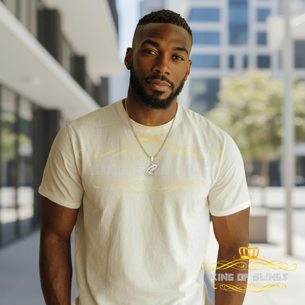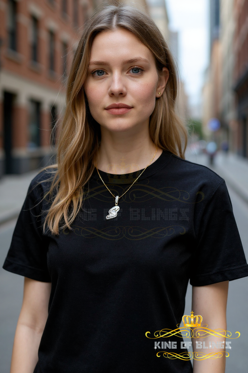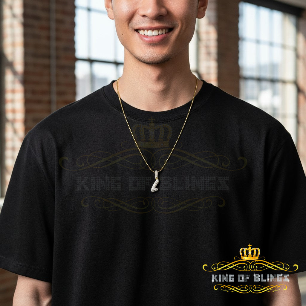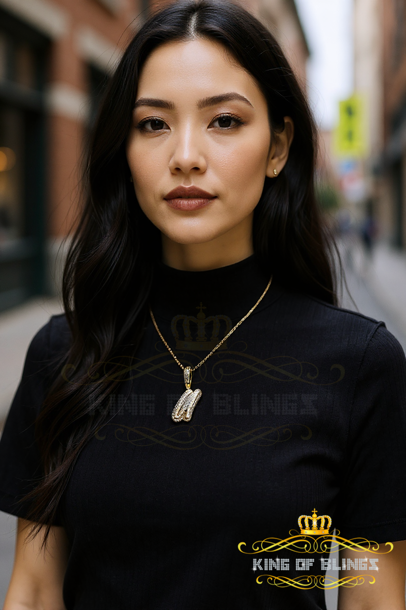 King Of Bling's Yellow Cursive 3D Alphabet Shape 925 Sterling Silver Cubic Zirconia Pendant