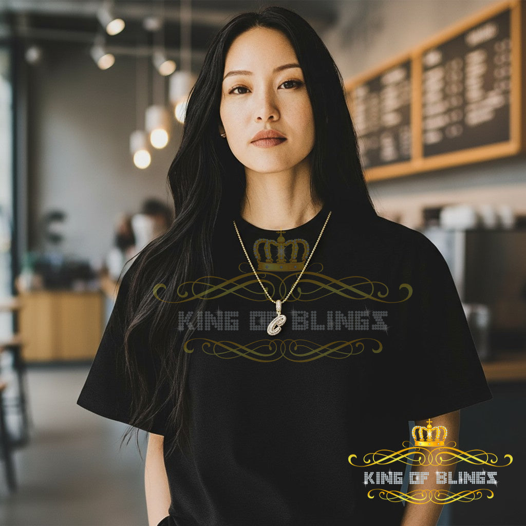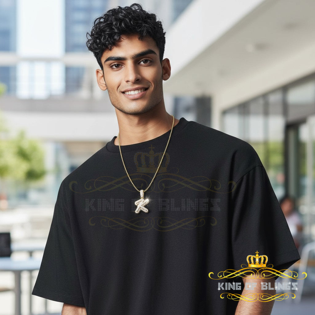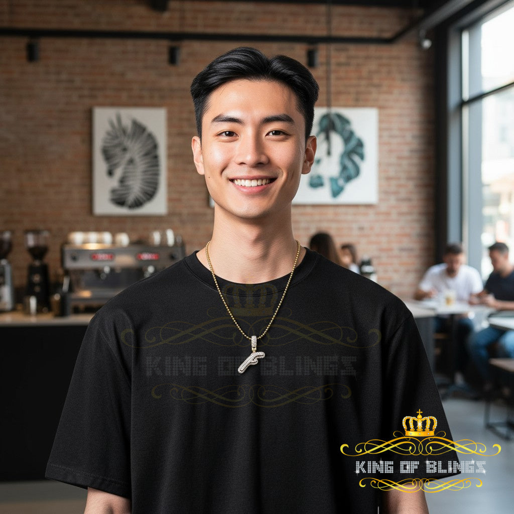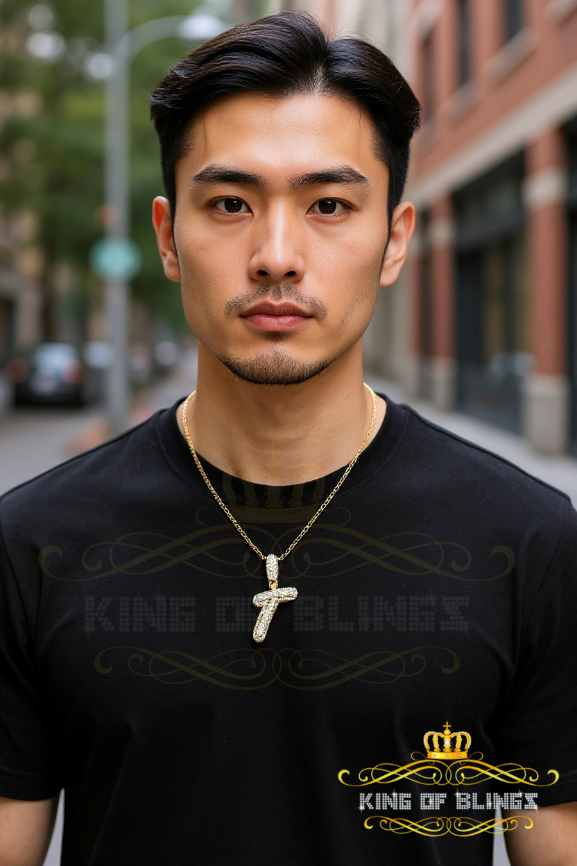 King Of Bling's Yellow Cursive 3D Alphabet Shape 925 Sterling Silver Cubic Zirconia Pendant
