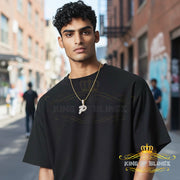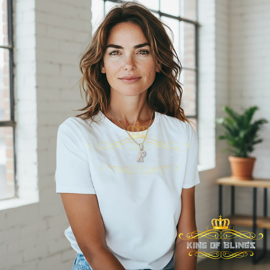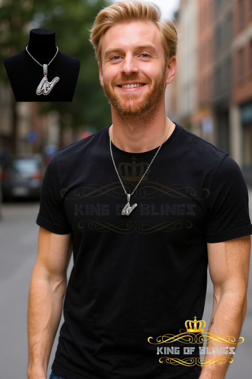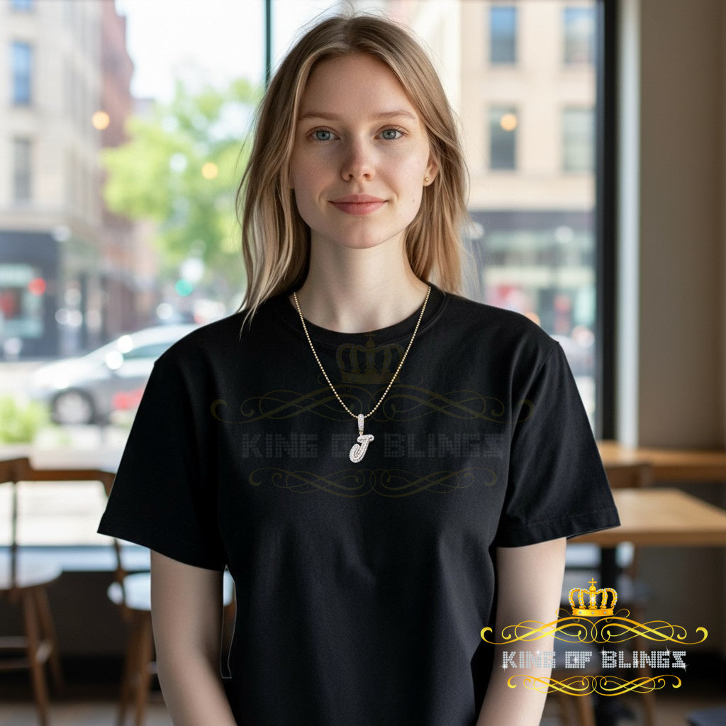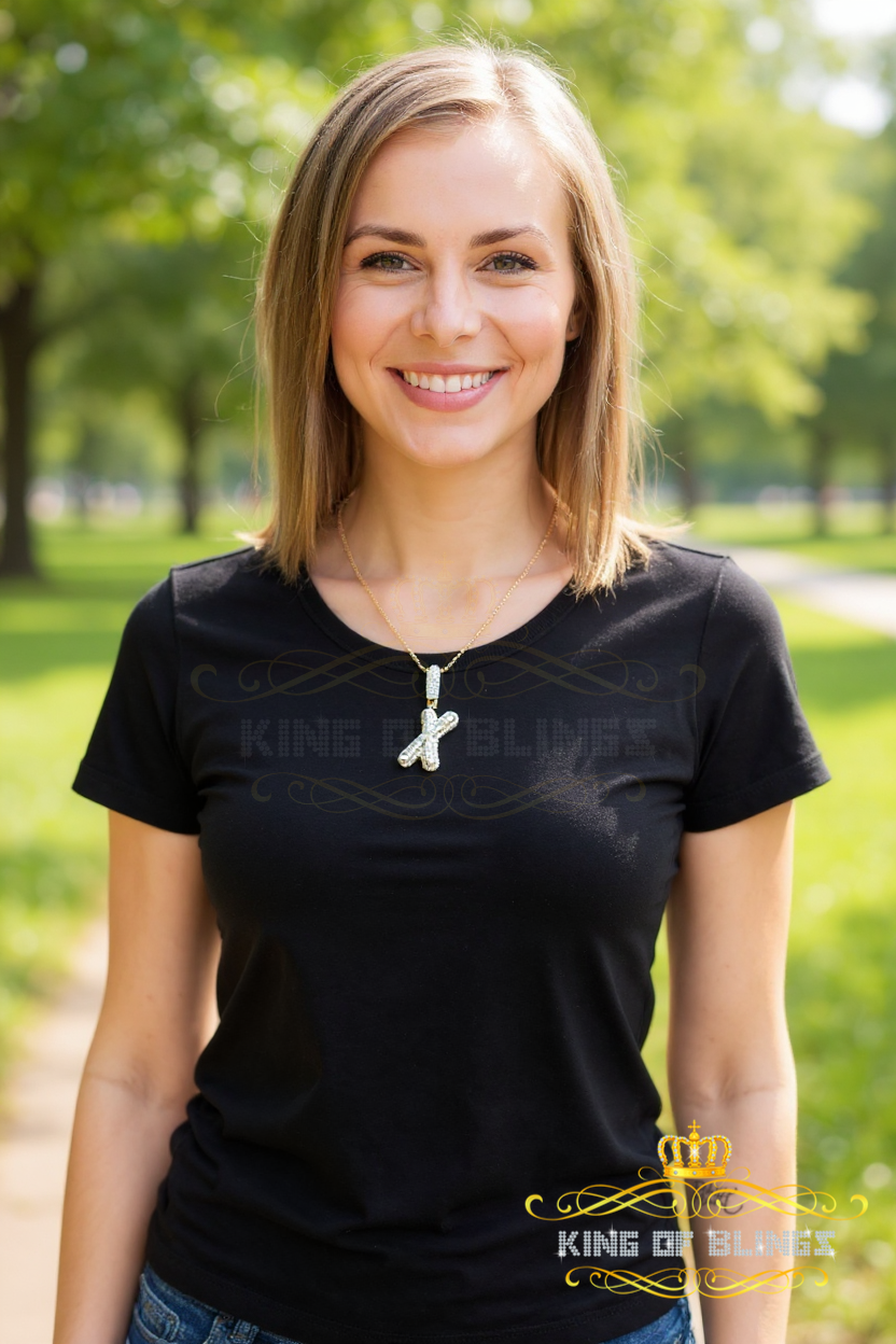 King Of Bling's Yellow Cursive 3D Alphabet Shape 925 Sterling Silver Cubic Zirconia Pendant
